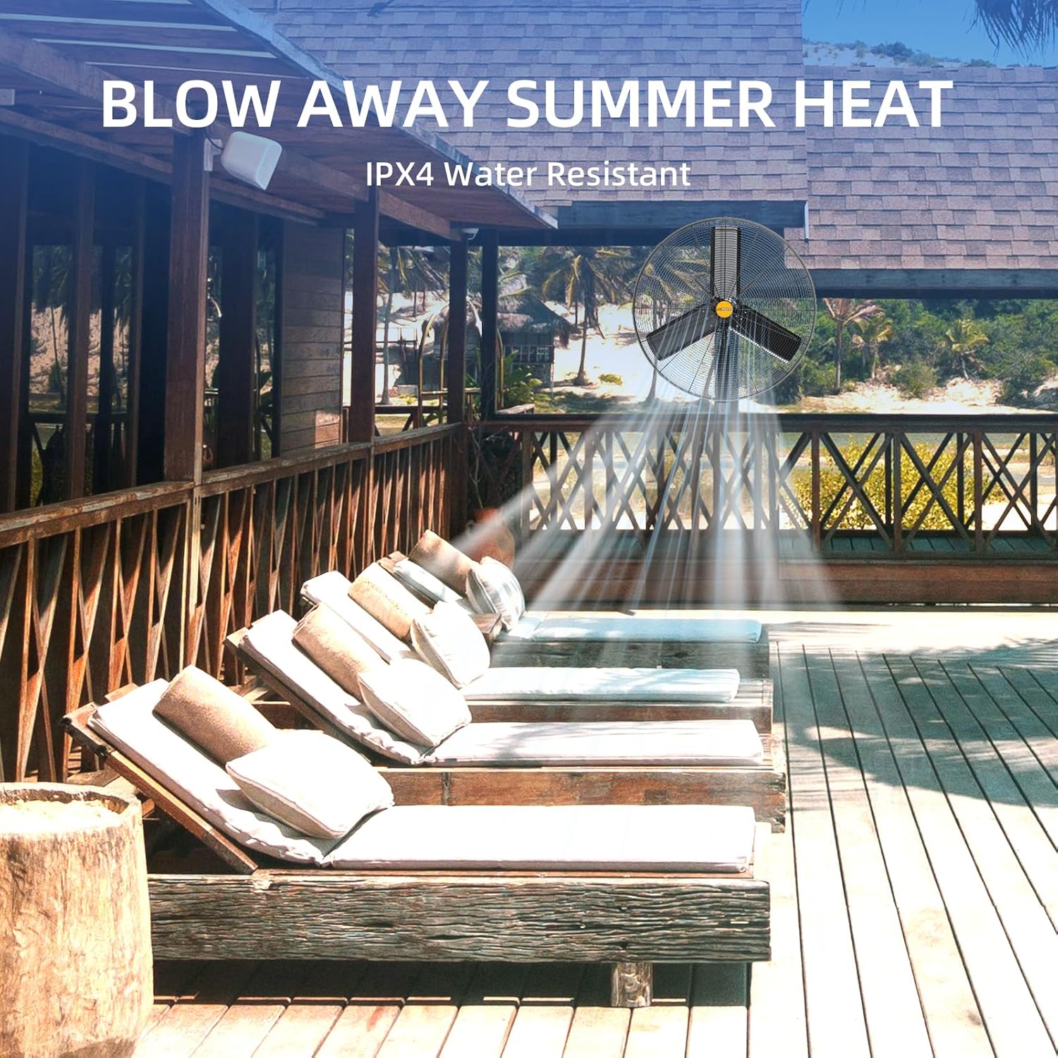 - OUTDOOR IPX4 WATERPROOF OSCILLATING WALL MOUNTED FAN - This metal wall fan uses a totally sealed AC motor, resist from rain or dust. Steel frame and aluminum blades ensure durable outdoor use. ETL listed and meets OSHA & UL507 standards.