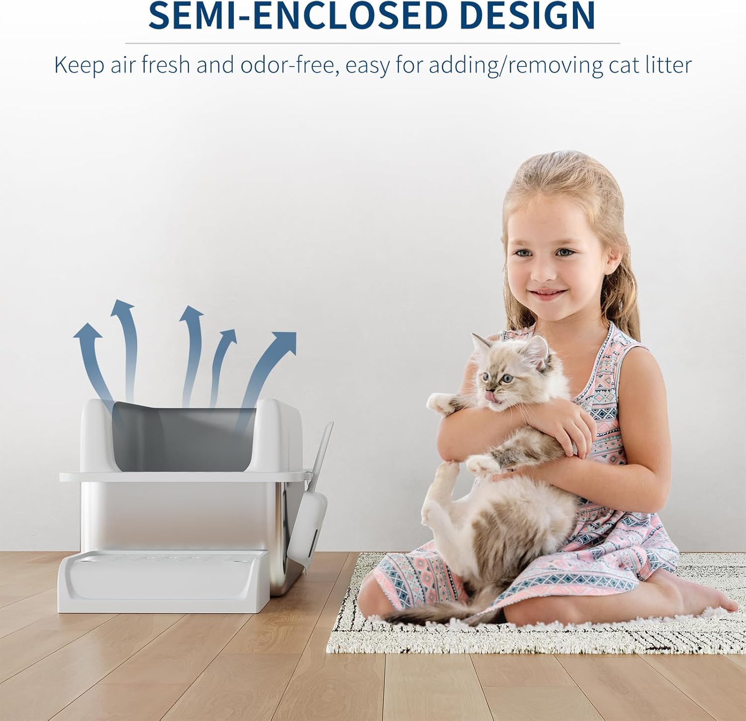 - Odor-Free and Easy to Clean: The smooth, non-stick stainless steel surface makes cleaning a breeze, as waste easily slides off without leaving odors behind. Unlike plastic, this sturdy material resists rust and scratches, ensuring a hygienic environment for your cat.