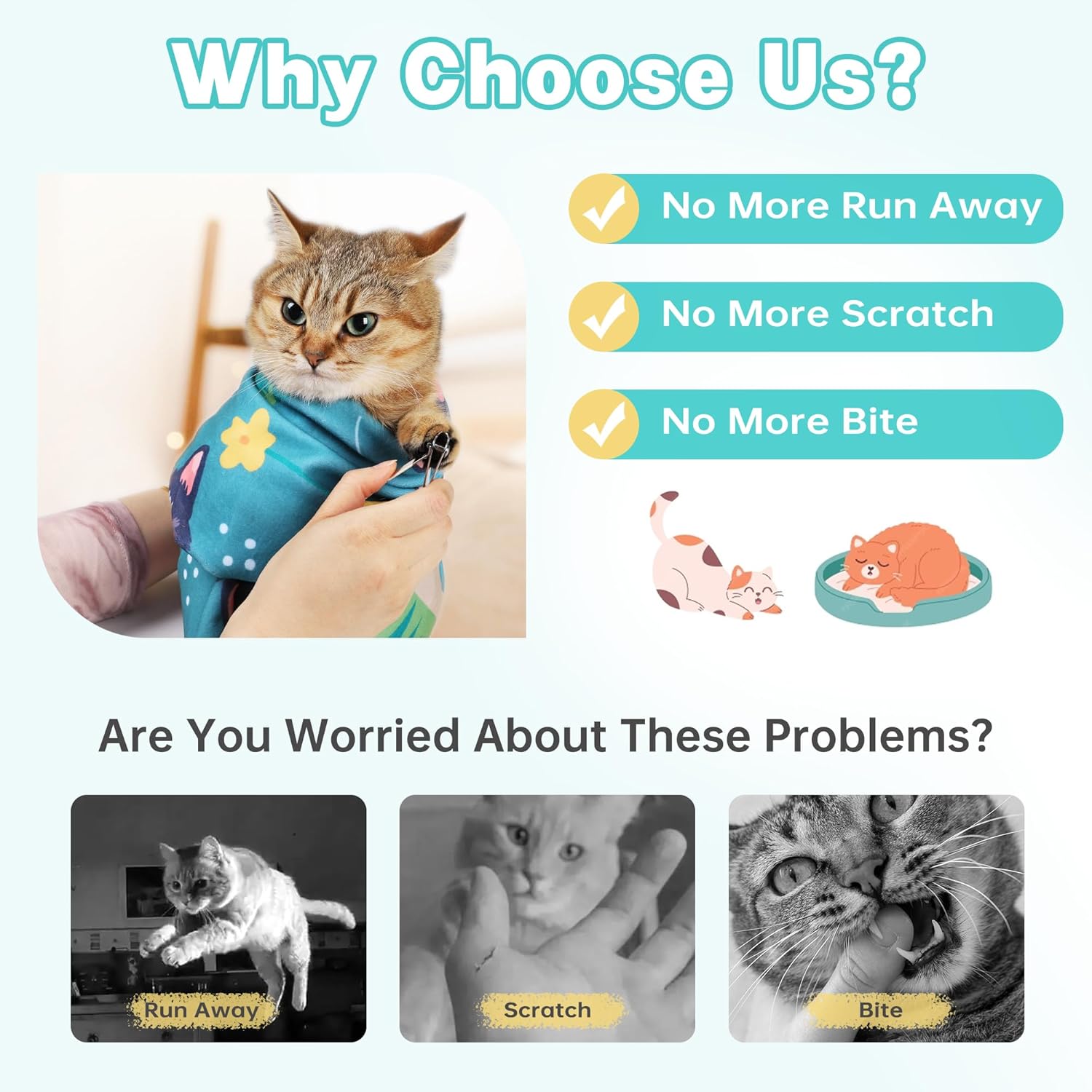 - Multifunctional Cat Wrap: Our Cat Wrap is versatile and can be used for a variety of grooming tasks. It is ideal for nail trimming, brush teeth and vet visits