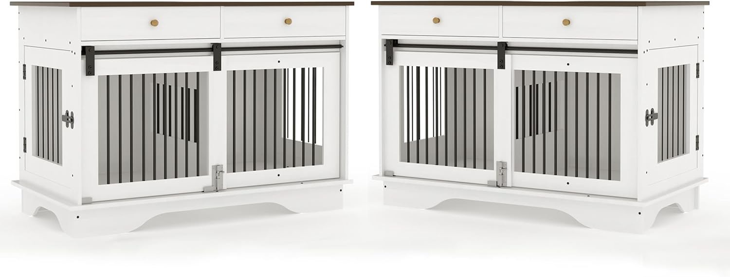 - Extra Storage Space:Two spacious storage drawers meet various needs, perfect for storing dog supplies. . For medium-sized dogs, the fence can be adjusted to create extra storage space.
