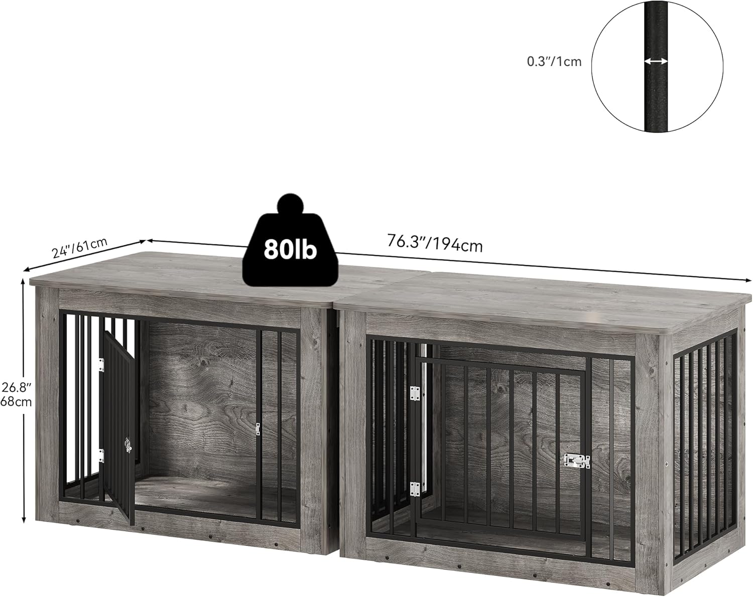 - Quality Steel Construction: The double dog crate robust door lock of this dog crate is made from high-quality steel to resist dog bites. The heavy-duty steel tube structure guarantees durability; Assembly is simple with a manual instructions