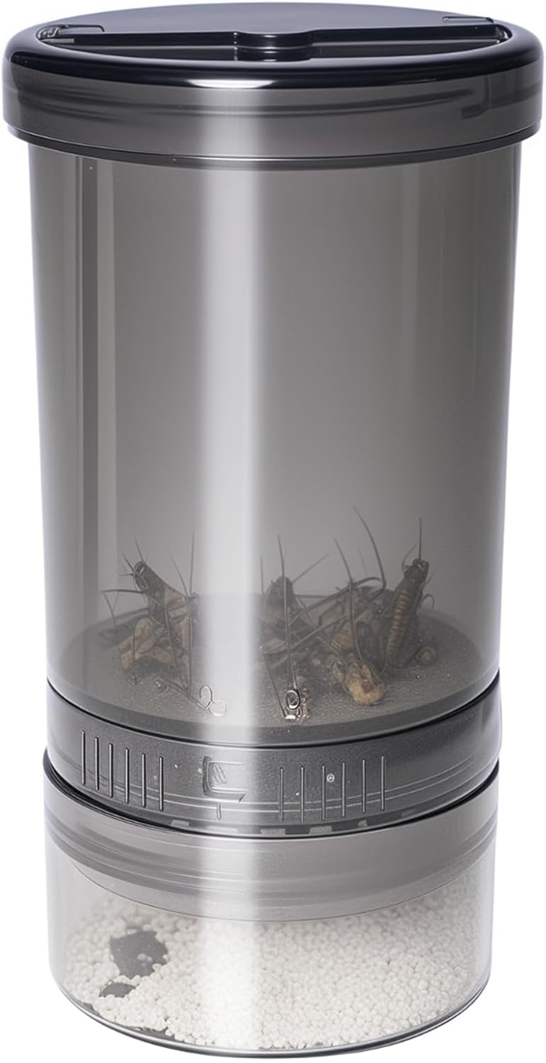 - 【3 secs shaking Feeding System】: ① Load crickets and nutrient powder → ② Tighten the anti escape cover → ③ Shake for 10 secs → Complete. One handed operation, able to handle chaotic feeding moments with ease.