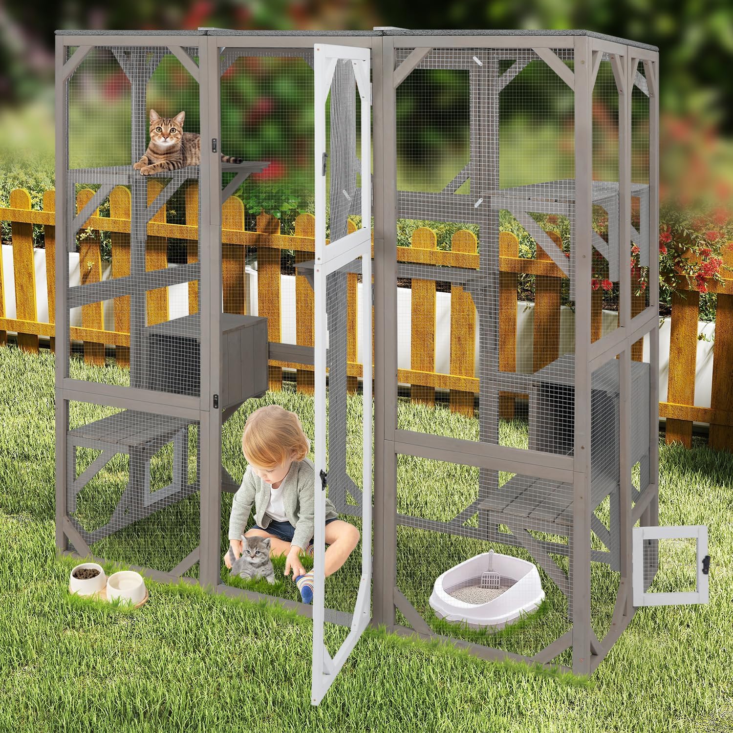 - 【Spacious and Comfortable】The outdoor cat enclosures is spacious enough and high enough at a height of 70.86" for adults to get in and out or interact with it, as well as easy to clean.
