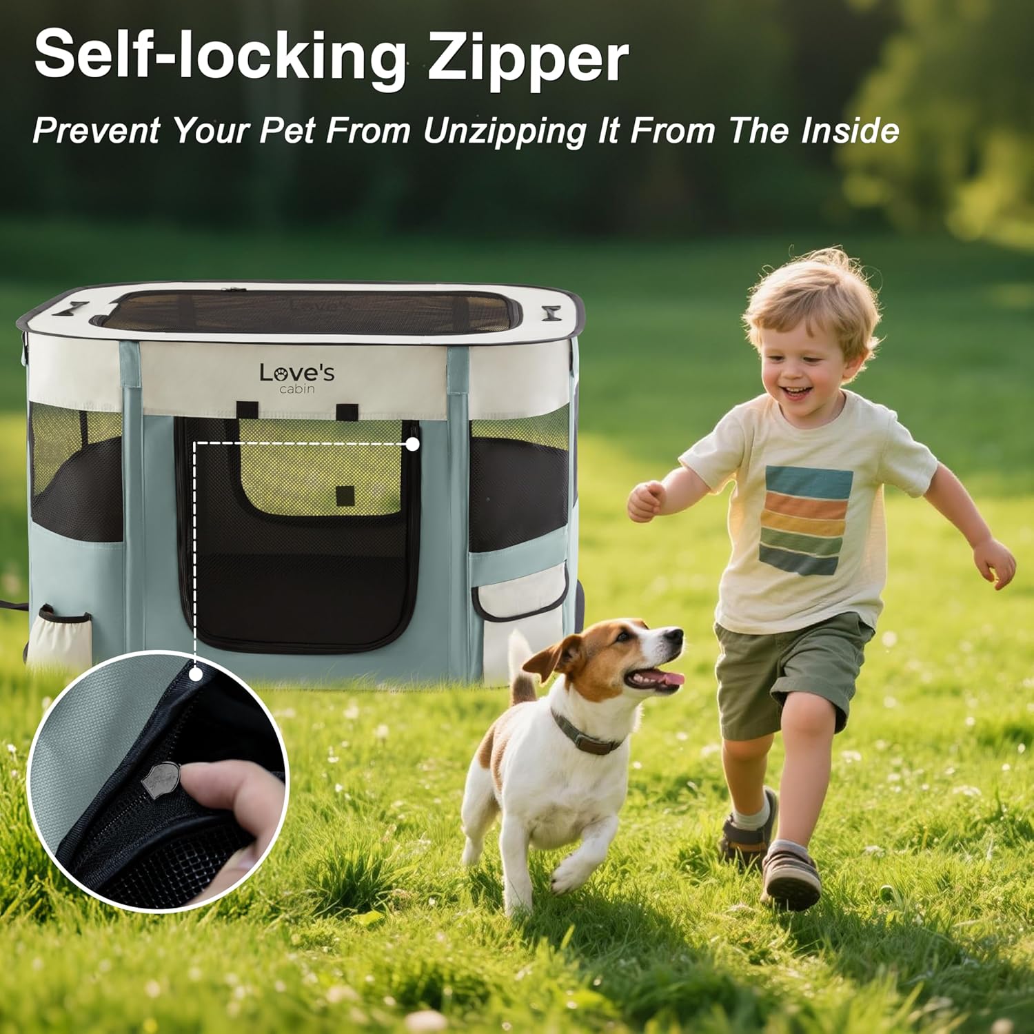 - Safe and Superior Design: Puppy playpen is composed of 600D Oxford cloth and scratch-resistant high-grade washable thick mesh which makes the cleaning easier. It is designed into a Spacious 4-panel design with protected seams and reinforced corners to ensure your pet's safety. Zippered door provides easy in/out access for your pet. Close the door to keep your pet safely inside.