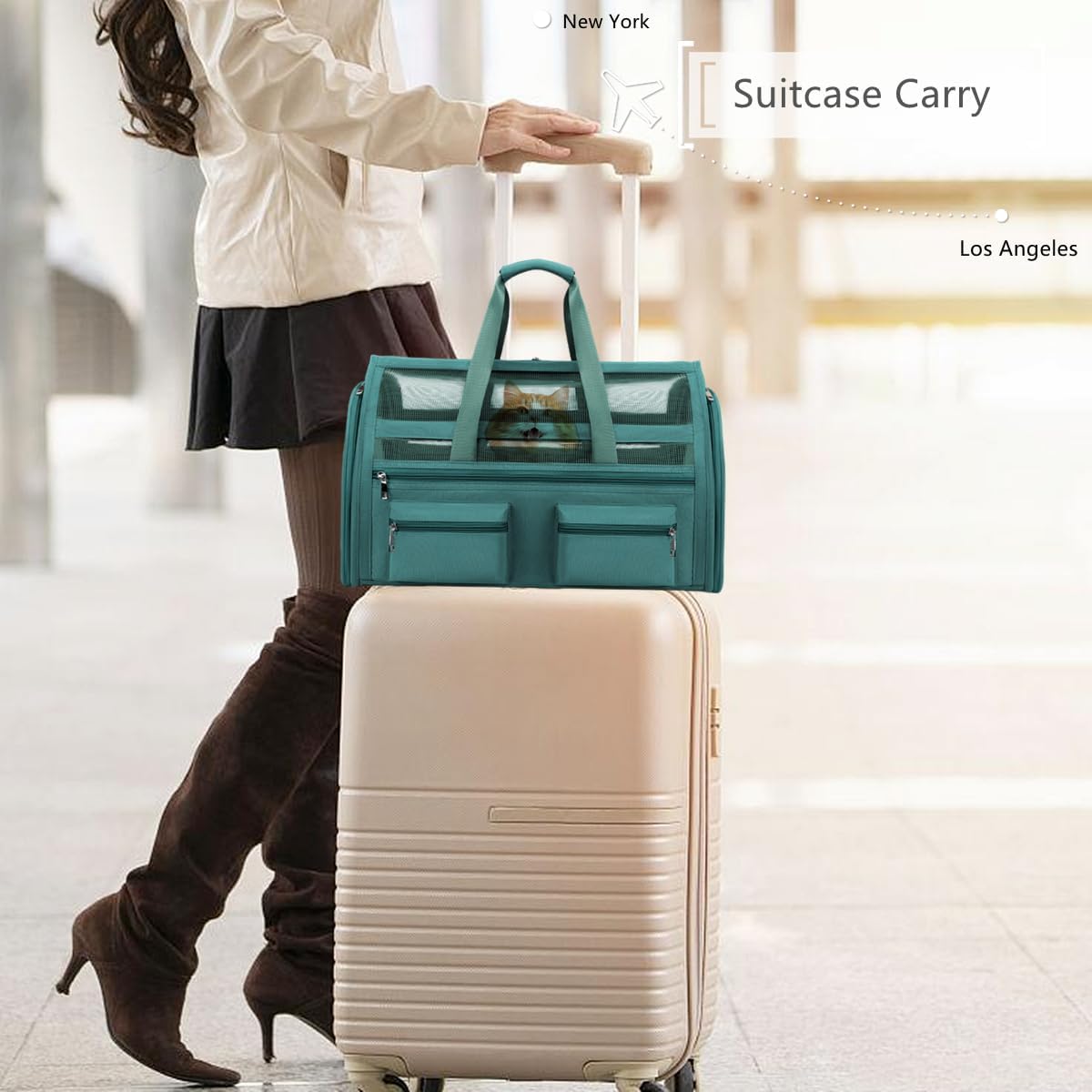 - [AIRLINE APPROVED] This cat carrier is designed with airline approved, it can fit comfortably under most flight seats, we can take our pets wherever we want. Dog travel carrier offers two attachment loop handles that can be used as a dual harness or as a luggage strap for balanced carry and secure transport.