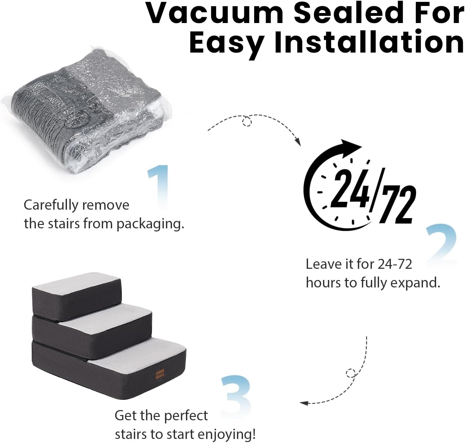 - Adjustable Height: Garnpet Dog Stairs allow you stack layers freely to match furniture, shorten to 2-3 steps for low sofas and 4-5 step for high beds. Note: After unboxing, let foam expand fully for 72 hours for maximum comfort.