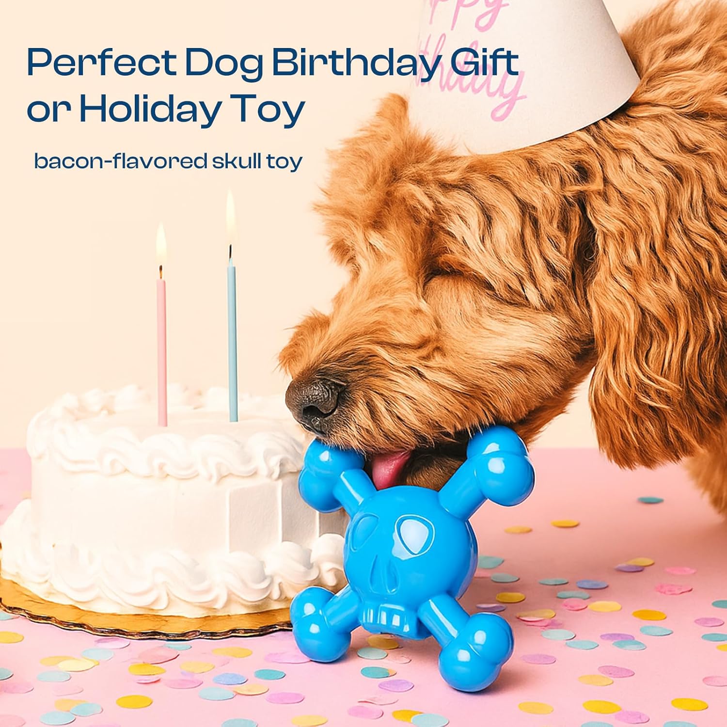 - Dog Birthday Gift & Essential Supply: Unique Skull Design – Fun and Functional,This bacon-flavored skull toy is a fun dog birthday toy or new puppy essentials choice. It’s perfect for dogs that need long-lasting chew toys and interactive play to stay happy and healthy. A must-have in any pet toys for dogs collection!especially for fans of super chewer dog toys.