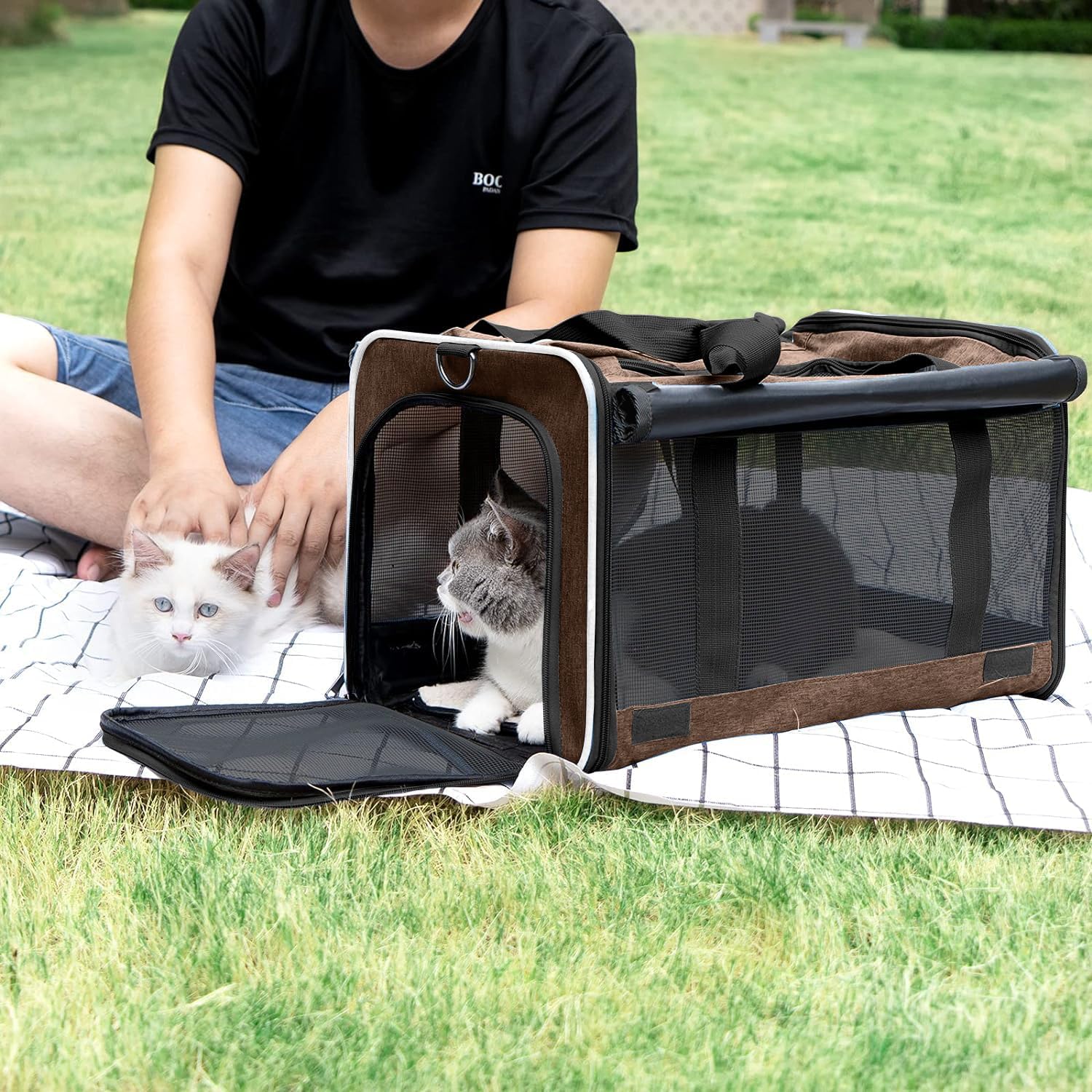 - 【Collapsible & Lightweight】The cat carrier can be folded into a pad to save your storage space and is easy to take out. Top and side entry.