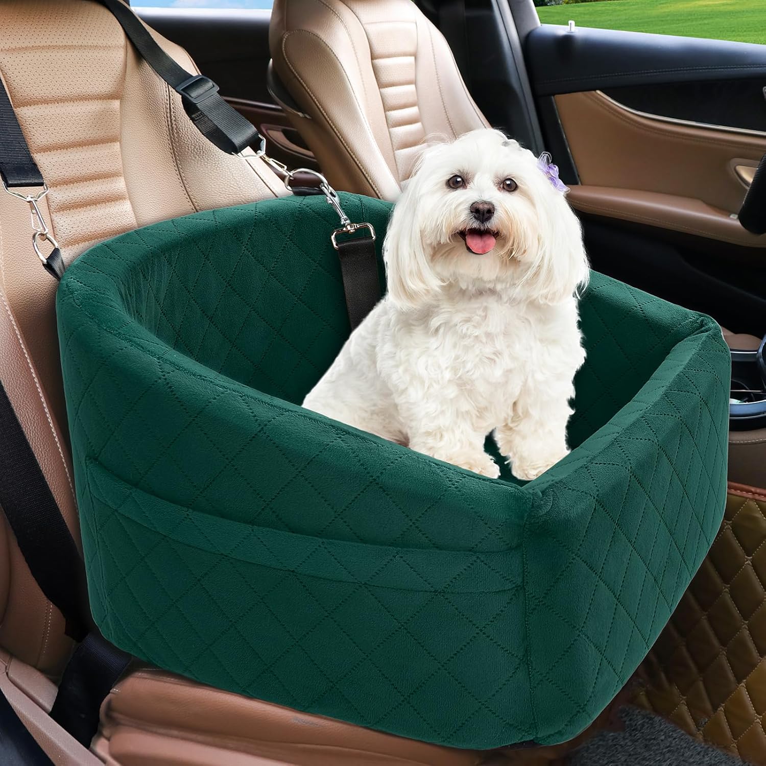 - Keep Your Pet Safe: This dog car seat can be secured with the car seat belt and headrest belt to prevent movement ,plus use the included safety leash to fasten to your dog's harness,no more worrying about the safety of your puppy while driving