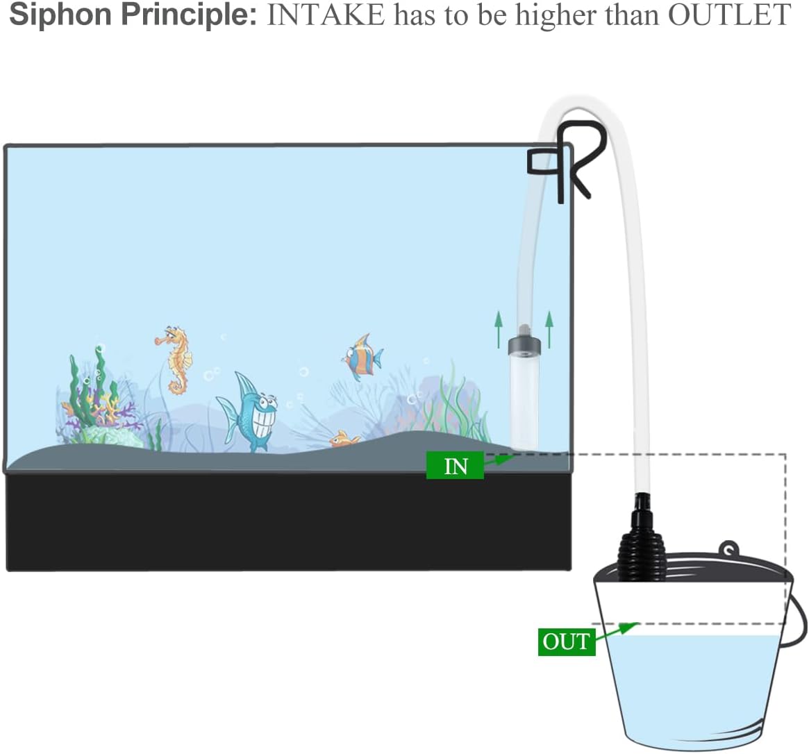 • FUNCTION --- Easy to control, convenient to siphon fish faeces, impurities, turbid water out of fish tank.