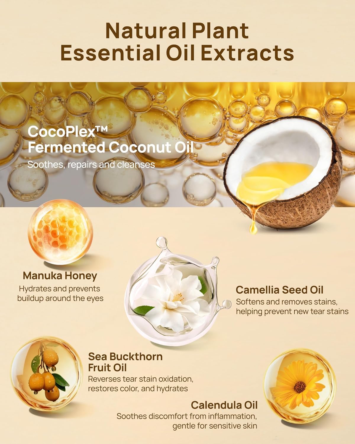 • Rapid Penetration for Deep Nourishment - Advanced small molecule essential oil technology penetrates faster than traditional formulas, deeply nourishing the skin around the pet's eye area while forming a protective barrier against irritants. This dog tear stain remover is ideal for sensitive eyes, with gentle absorption that won't clump or leave residue, eliminating extra cleaning hassles.