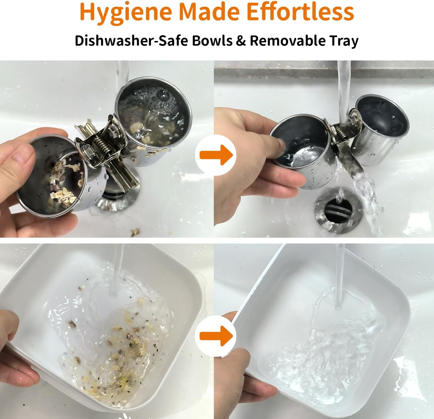 - Feeding + Training? Yep, We’ve Got Both! - This parrot stand doubles as a versatile bird stand, blending training, perching, and feeding seamlessly. The detachable stainless steel double bowls (clip-on design!) let you serve food and water separately—ideal for bird training sessions or daily meals.