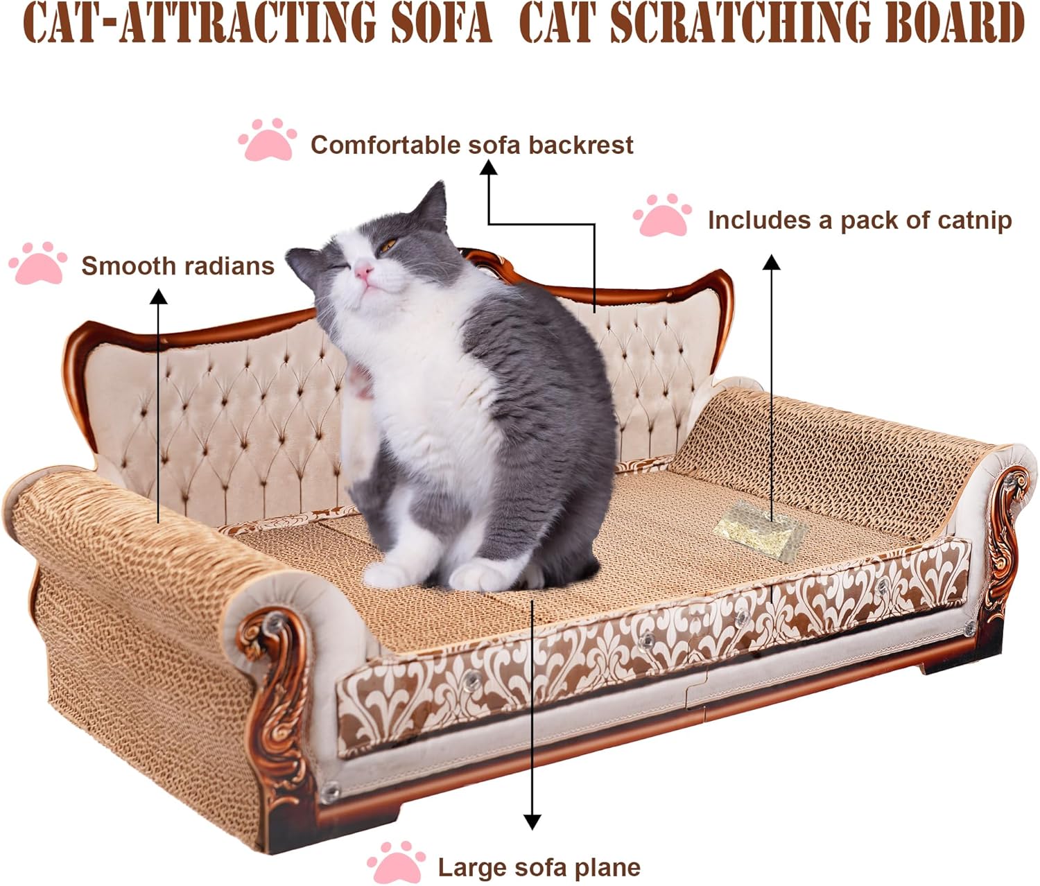 - Fun Scratching Cat Toy: This premium cardboard cat sofa provides a good scratching field for cats and helps keep PAWS neat and healthy with pure organic catnip that keeps their attention while promoting relaxation and relieving stress.