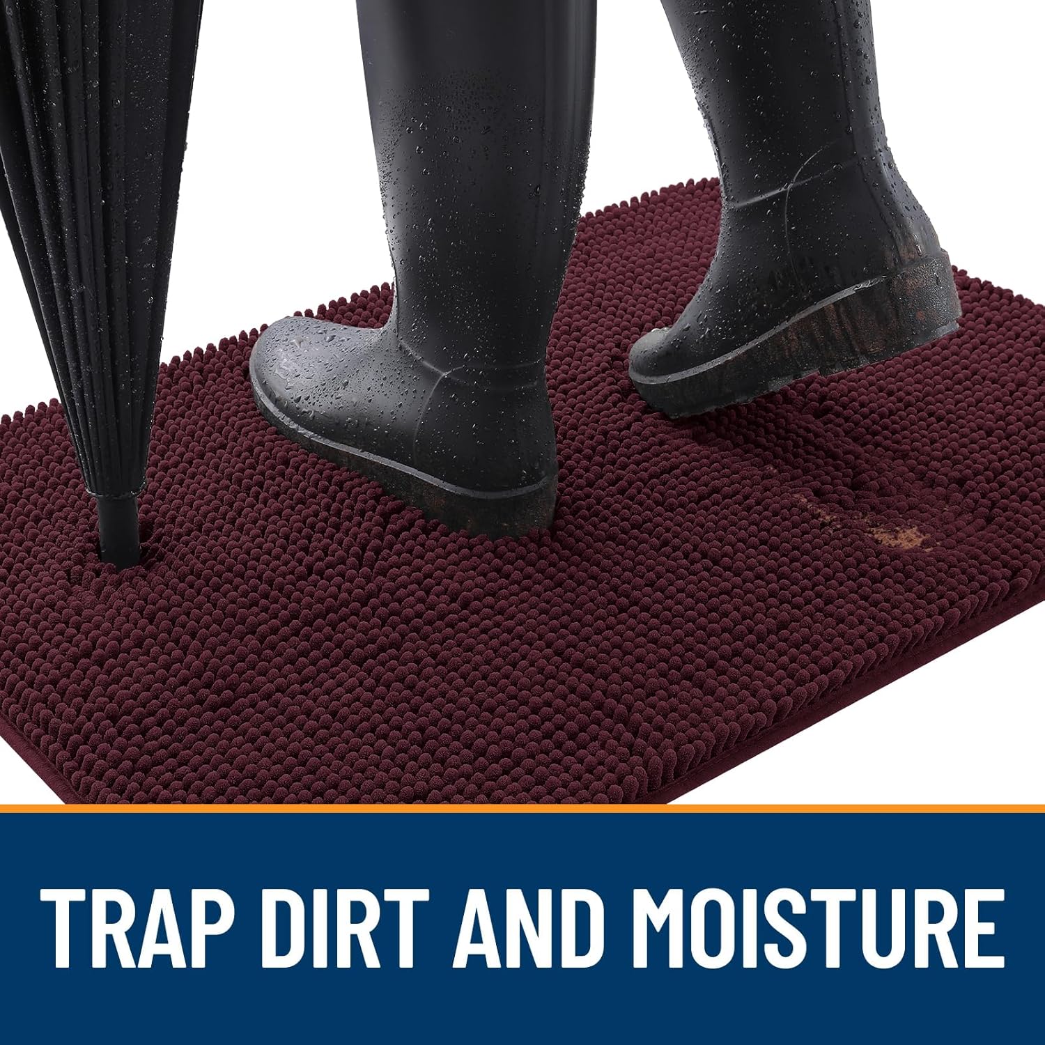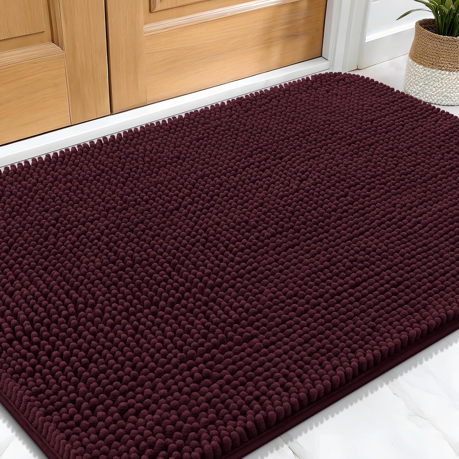 OLANLY Dog Door Mat for Muddy Paws 30x20, Absorbs Moisture and Dirt, Absorbent Non-Slip Washable Doormat, Quick Dry Chenille Mud Mat for Dogs, Entry Indoor Entryway Carpet for Inside Floor, Russet