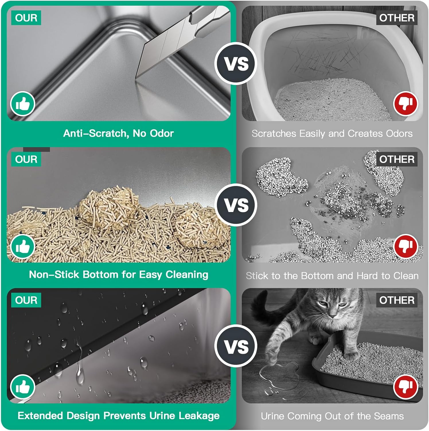 - 【XXL Stainless Steel Litter Box】extra large cat litter box with high sides is much larger than other xxl litter boxes for big cats, perfect for all sizes of large cats, kittens and old cats, multi-cat households