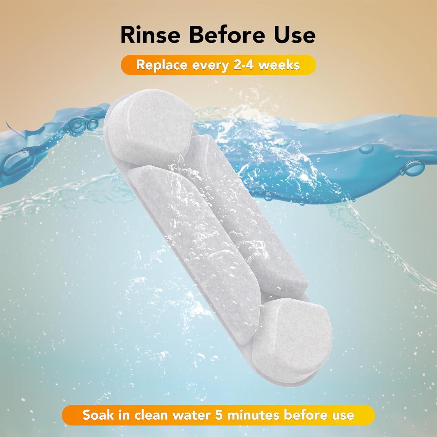 - Note: Please soak and clean the new filter in clean water for 5 minutes before using it to prevent the activated carbon dust from shedding into the water