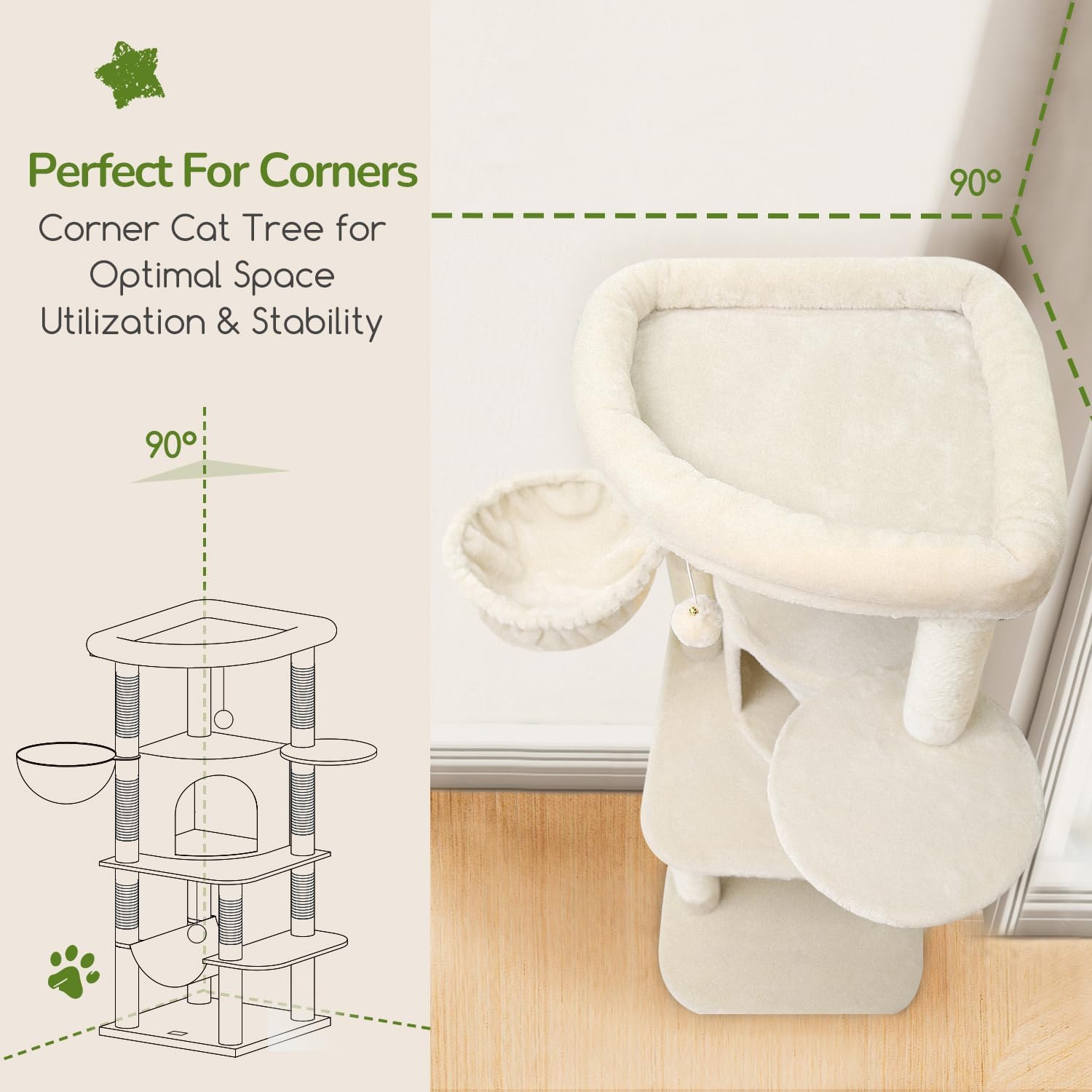 - Utilizing Corner Spaces: This multi-level cat tree tower for indoor cats features a fan-shaped design specifically tailored for corner placement in your home. It not only saves space but also complements your decor, adding a touch of modern artistry. The secluded nook it creates offers your cat a peaceful resting area while enhancing your living space aesthetically