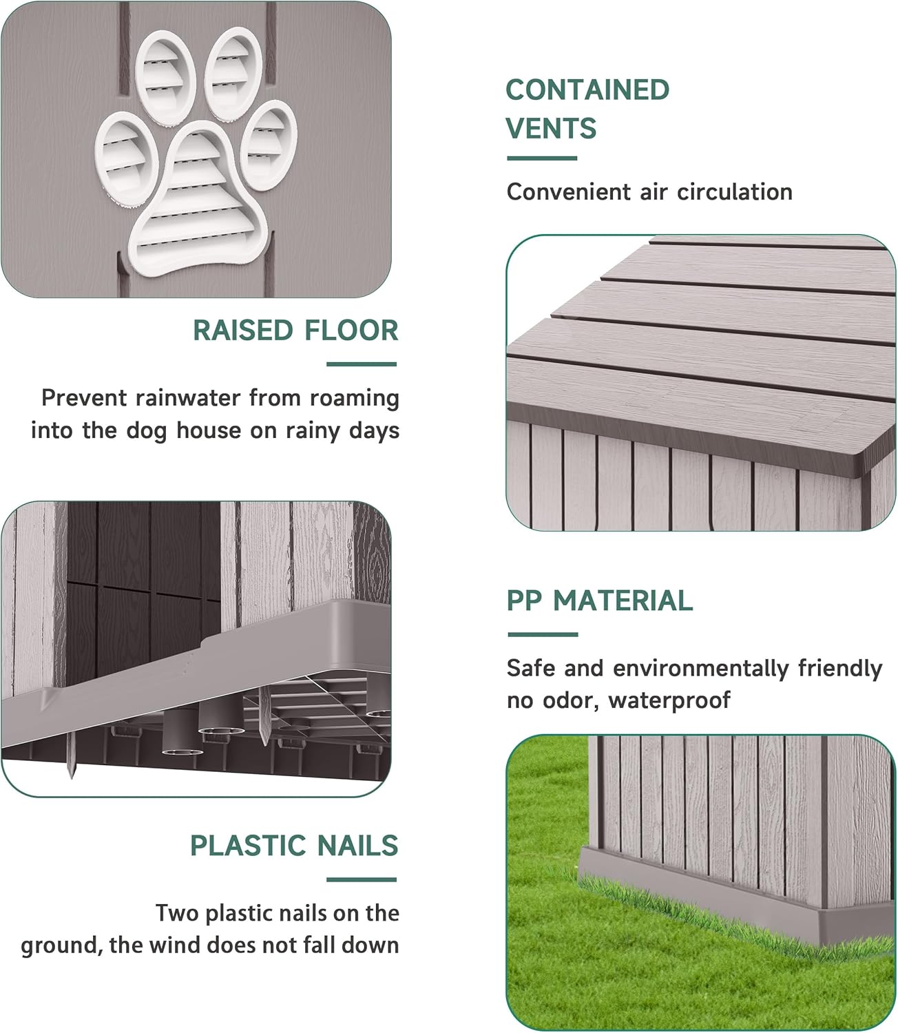 - Quality Material: Our dog house is made of high quality PP (polypropylene) material. This material is not only durable, waterproof and fade-resistant, but also resistant to various environmental elements, providing a long-lasting and reliable home for your dog.