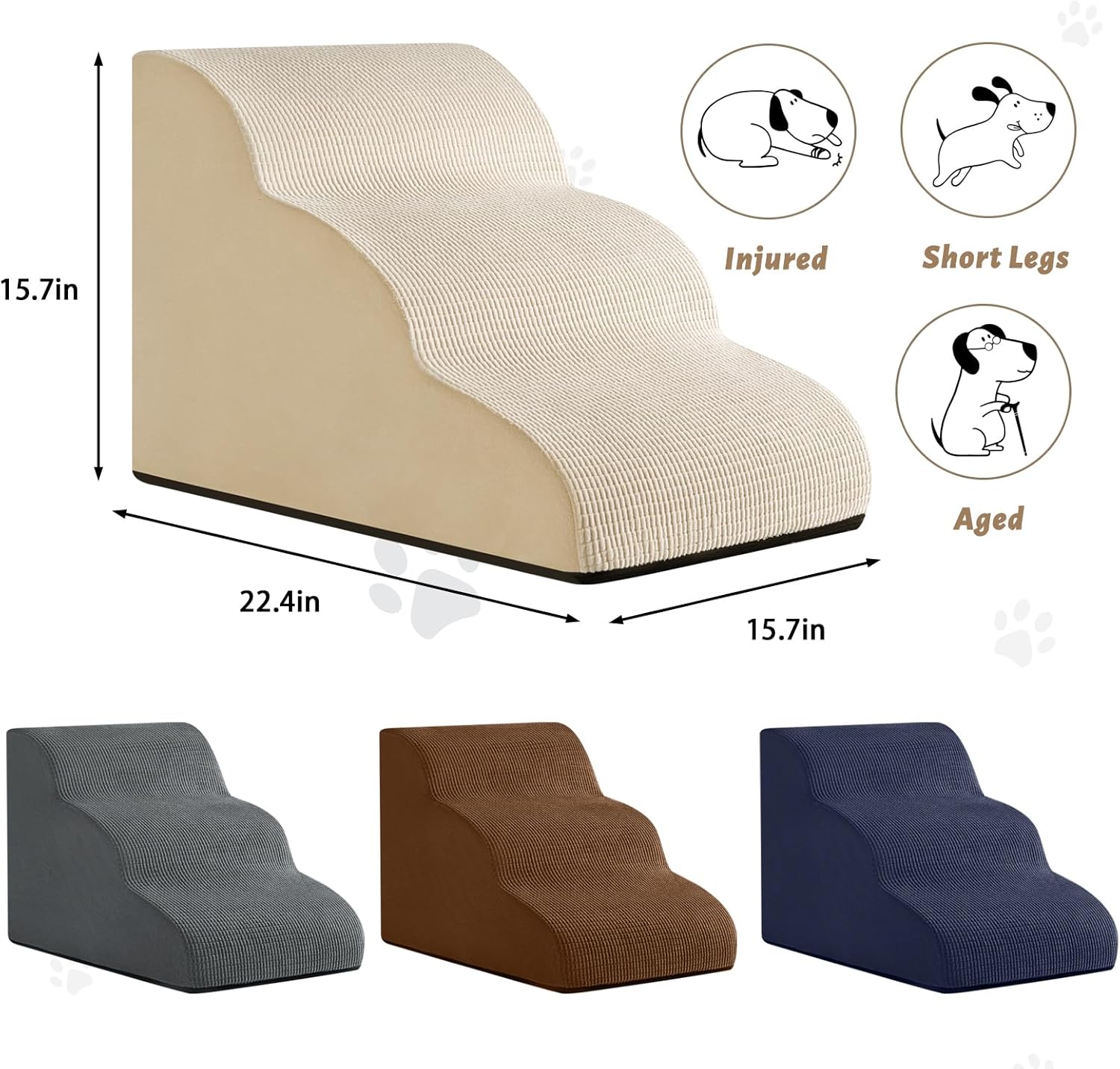 - Non-slip bottom -Pet steps are covered with durable, friction-resistant fabric, providing a soft and stable surface for your pet to walk on. Additionally, the non-slip bottom design ensures that the dog steps stay in place at all times