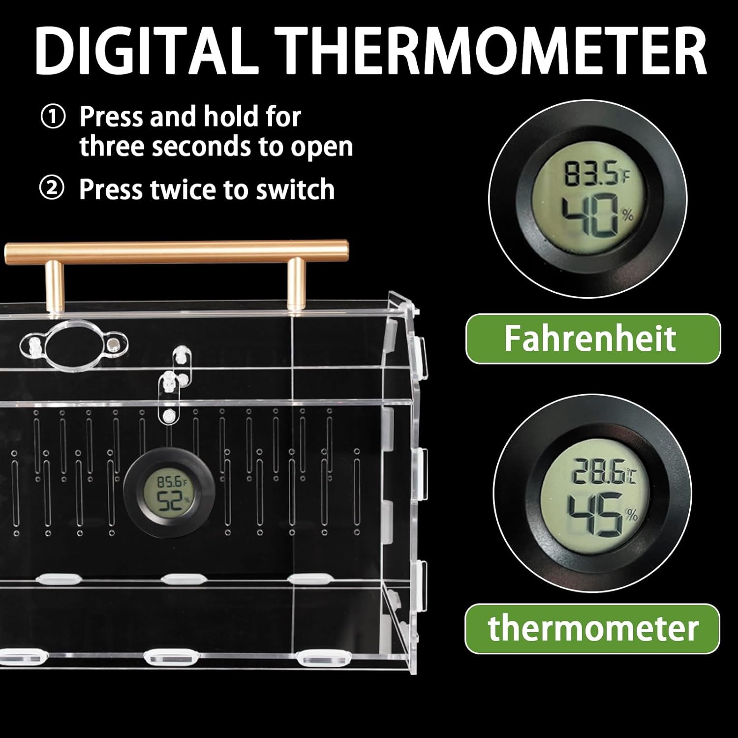 - Premium Acrylic Enclosure – Crafted from high-transparency, durable acrylic, this reptile terrarium offers a secure and visually appealing habitat for tarantulas, jumping spiders, frogs, and small reptiles. Resistant to scratches and easy to clean.