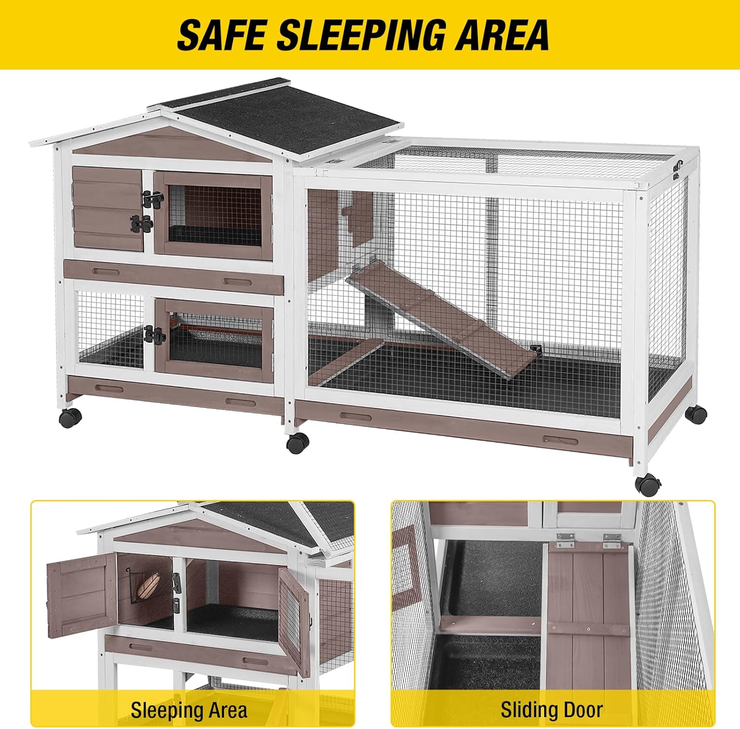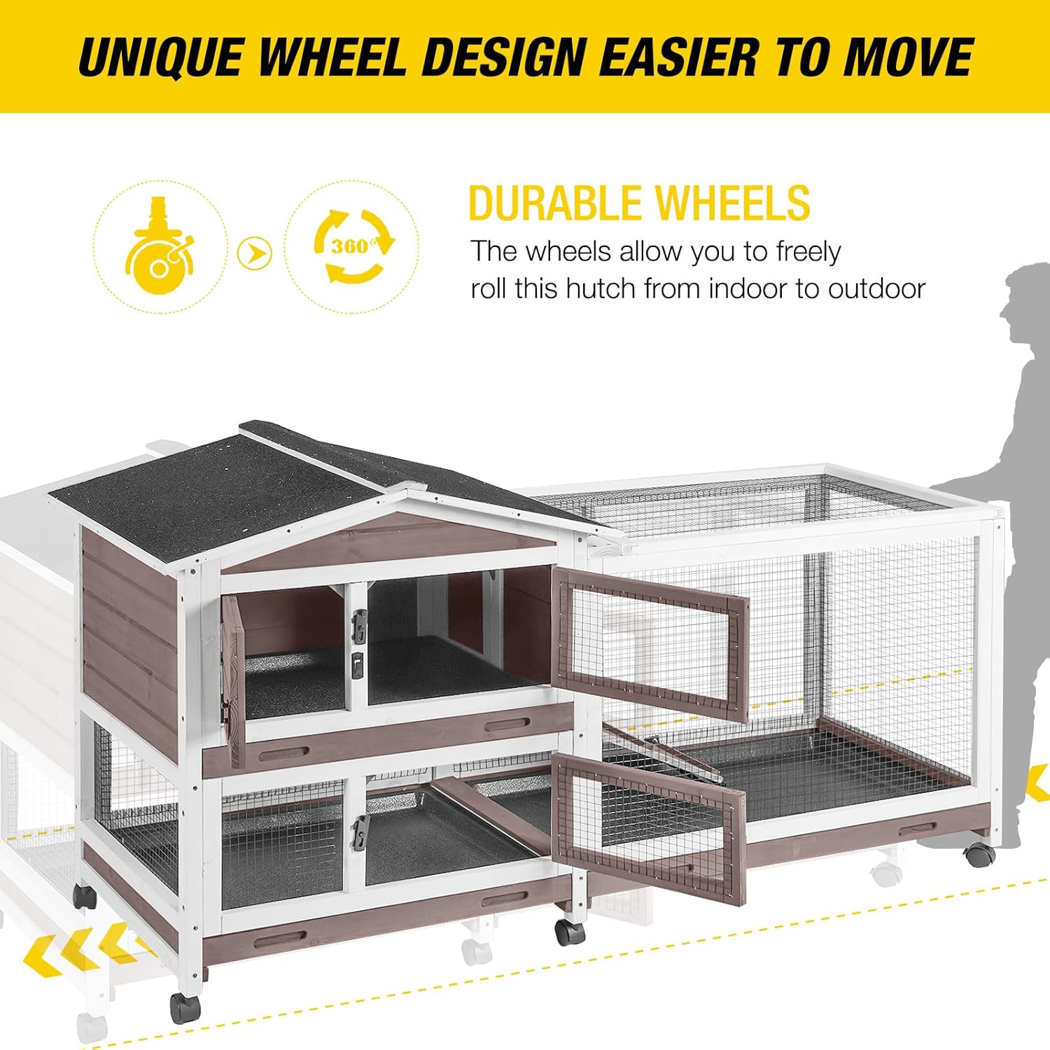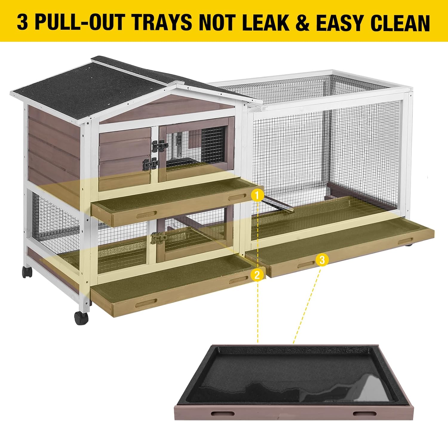 Aivituvin Rabbit Hutch Rabbit Cage Indoor with Casters Bunny Cage Outdoor for Small Animals with Pull-Out Tray