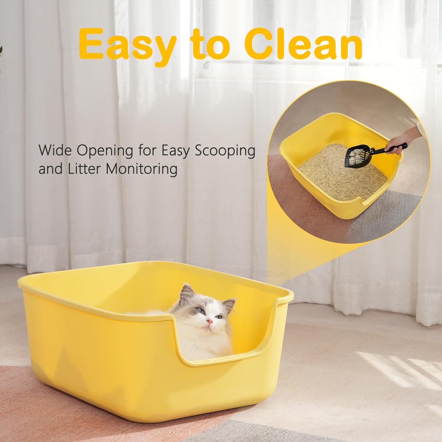 • 【Low Entry for Easy Access】 The low entry of this cat litter pan makes it perfect for kittens, senior cats, and cats with limited mobility. Whether you're caring for a playful kitty or an elderly cat, this kitty litter box provides easy access, ensuring your cat can use it comfortably and independently.