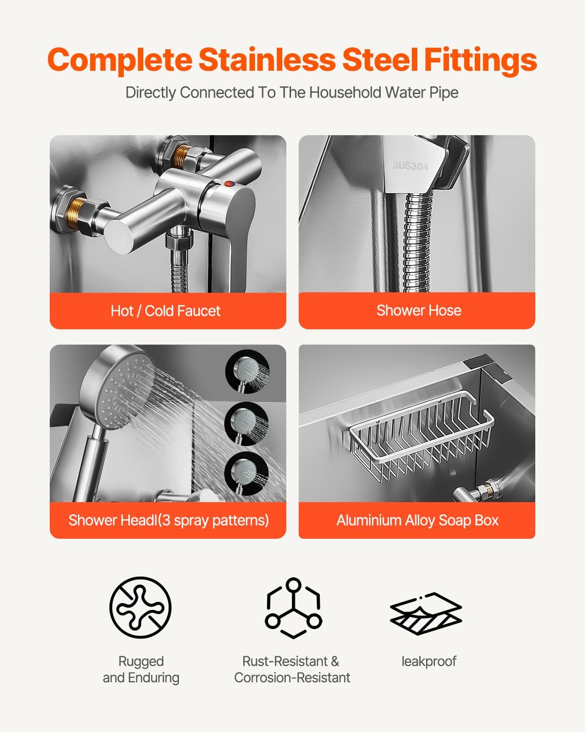 • Complete Accessories: This dog wash station comes with a showerhead, faucet, and a direct connection to a home hose, built for durability. It also includes a cleaning cloth, squeegee, brush, and gloves, ensuring your pet enjoys the full bathing experience