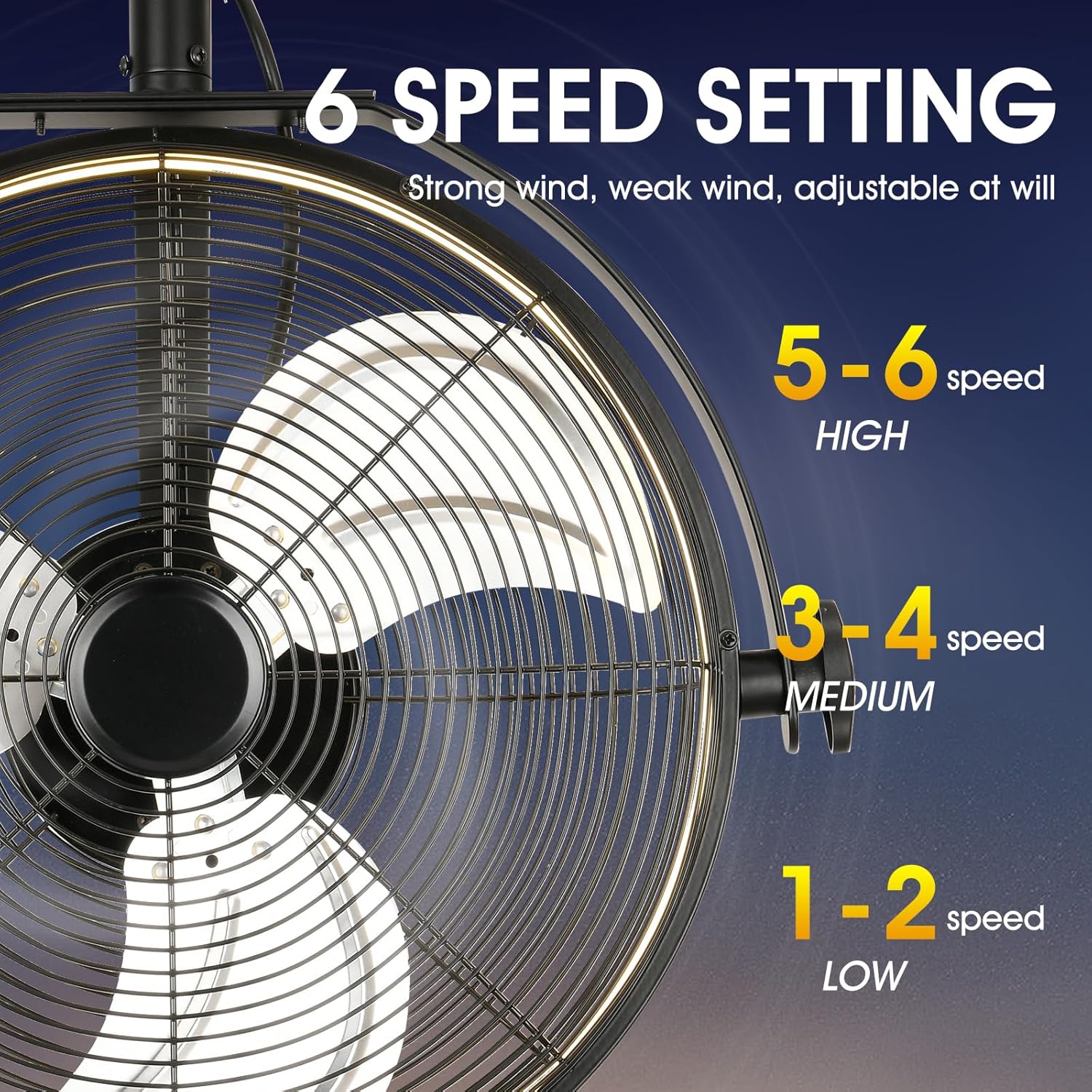 - 【High Velocity Airflow】The wall mounted fan has 6 wind speeds for you to choose from,which can be controlled by remote for added convenience.garage ceiling fan runs at max 3200 CFM,providing powerful and quiet airflow for large spaces such as garages,stores,covered patios,to meet your multifaceted needs!
