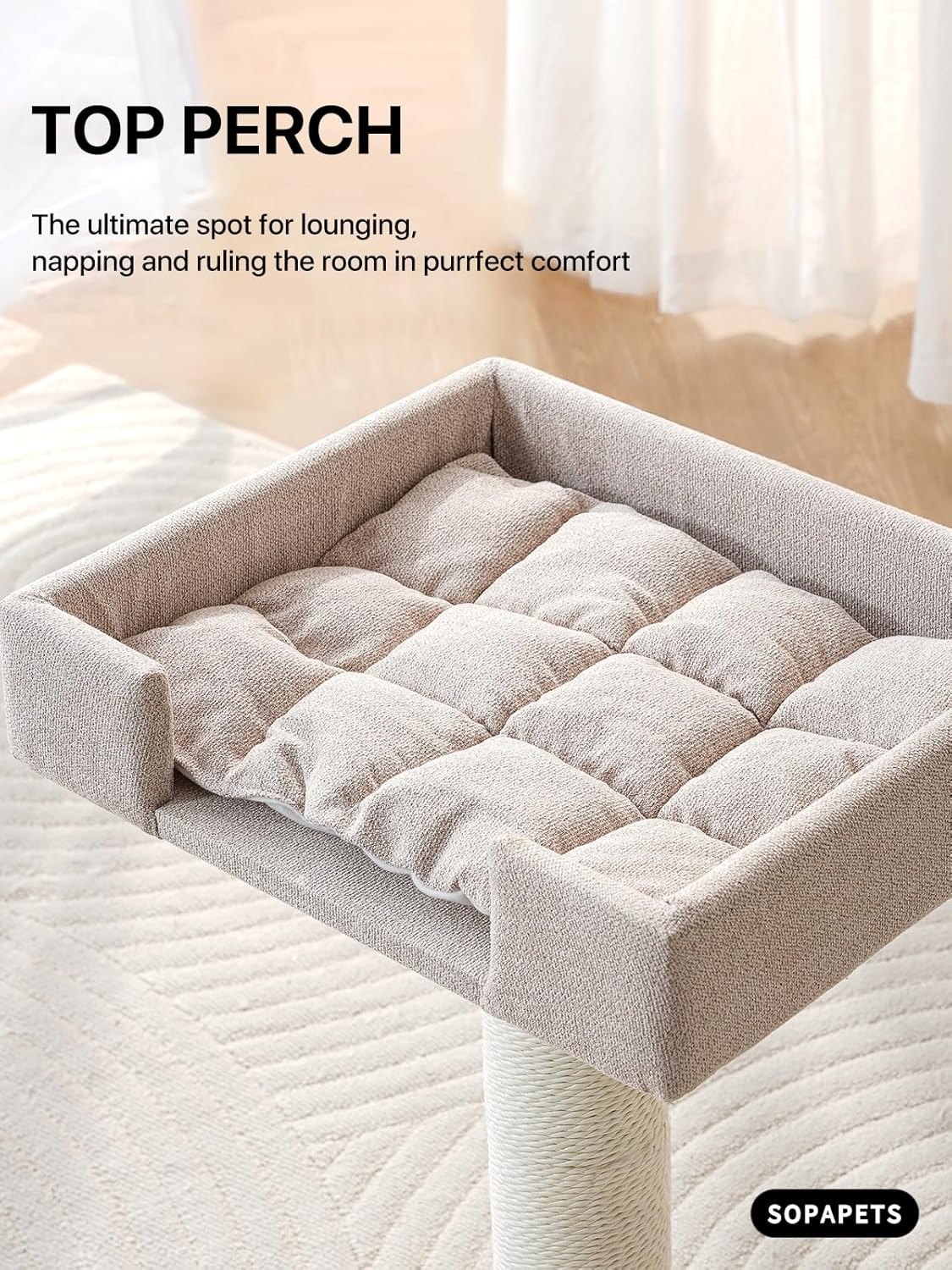 - Fully Equipped for Feline Fun: With large 48 cm top perch, a plush bed, cozy condo, deep basket, multiple scratching posts, and scracher, this cat tree has everything your cat could ever want to stay active and cozy.