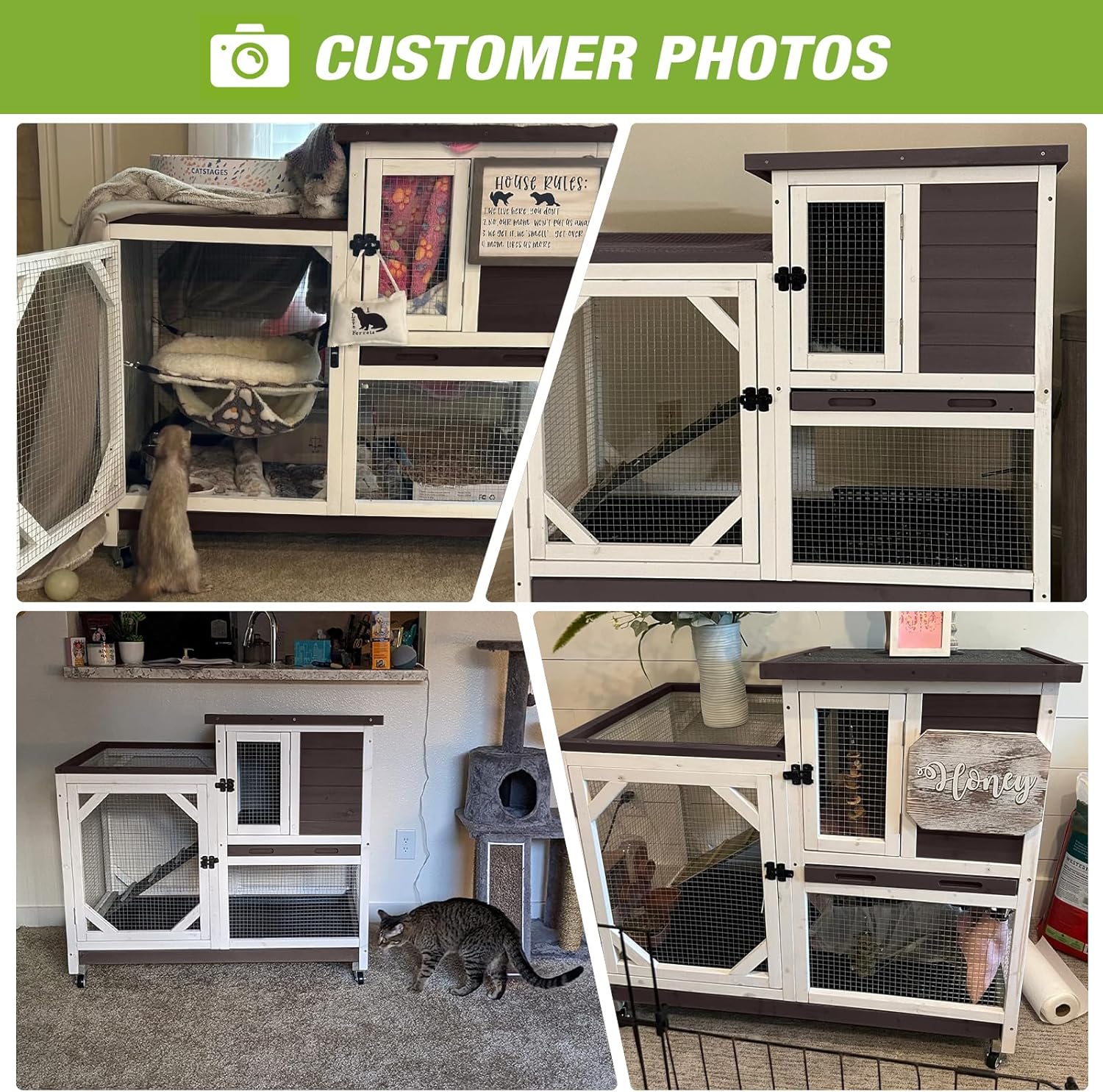 • 【Spacious Two-Story Design】Our rabbit hutches feature a unique two-story structure that provides plenty of space to explore and play.With a ramp connecting the lounge and activity areas, cute little pets can enjoy a cozy sleep.