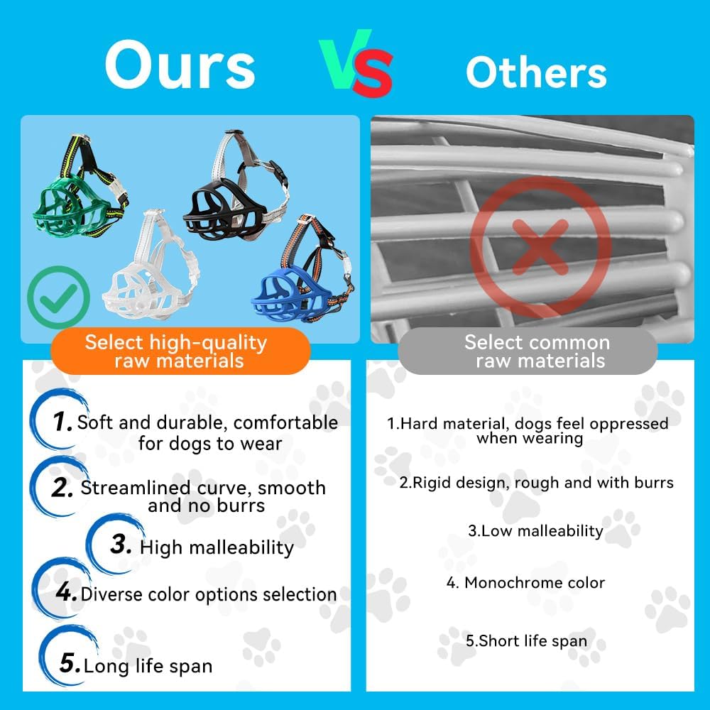 - LIGHTWEIGHT & DURABLE:Made from odorless TPE silicone, this muzzle is lightweight enough for small dogs yet strong and sturdy enough for medium and large dogs, ensuring durability and safety during daily use.