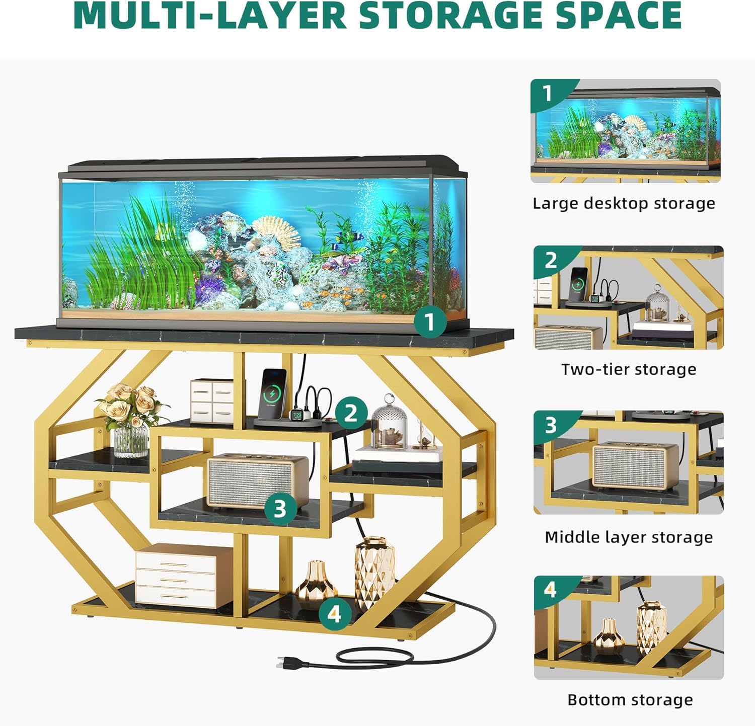 - Elevate Spaces: Crafted with marble veneer top and a modern openwork frame base, our aquarium stand effortlessly blends form and function, elevate the aesthetic of any space, from the entryway to the living room