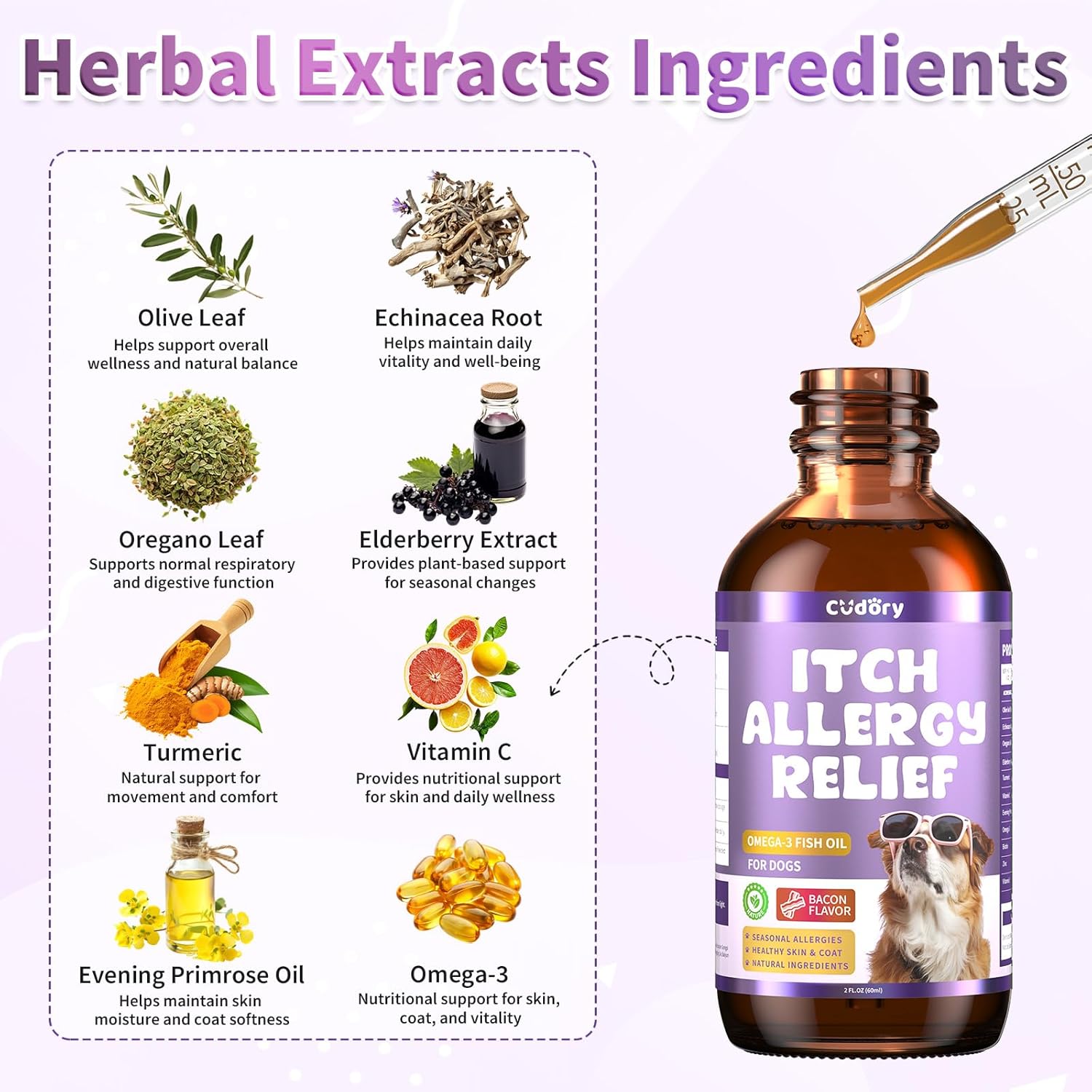- Easy to Use – Food Topper or Oral Drops: Simply add the allergy drops to your dog's food, treats, or administer directly by mouth. Designed for daily use to provide consistent support for your pet's wellness.