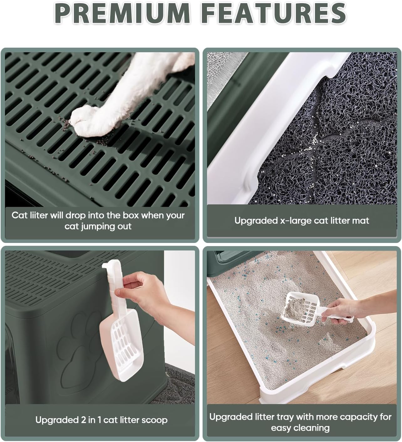 - [Pet Friendly Product] - The cat litter box with lid is made of stain resistant plastic. It can be flexibly folded and easy to clean, providing a neat living environment for your cat. The X-large litter mat is made of safe, high quality PVC material that is more friendly to your kitty