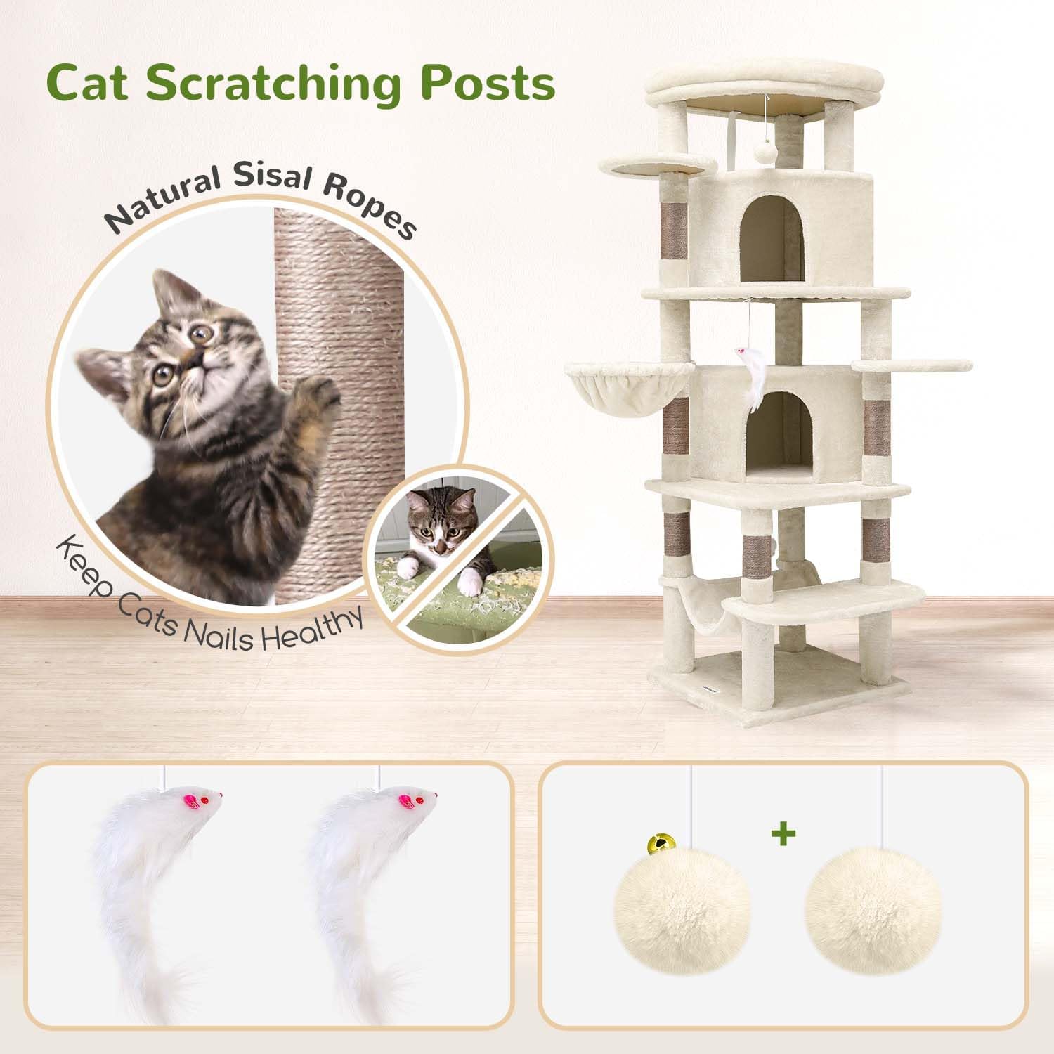 - Nature-Inspired Aesthetics: Standing at 66 inches, this multi-level large cat tree features a design inspired by natural elements. It incorporates smooth curves and arcs, lending a distinct artistic flair to the structure