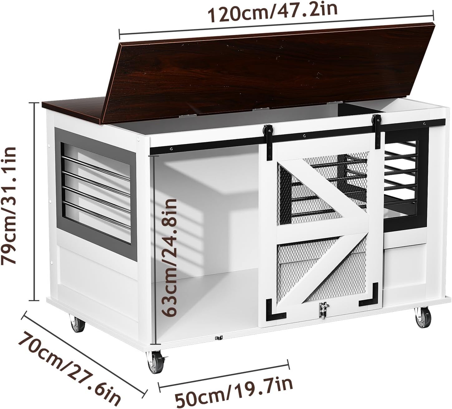 - 【Spacious Interior Space】The generous dog crate furniture large breed(47.2"L x 27.6"W x 27.6"H) interior fits Great Danes, German Shepherds, or two small dogs (under 25 lbs). Please measure your dog's length and height for the best fit.