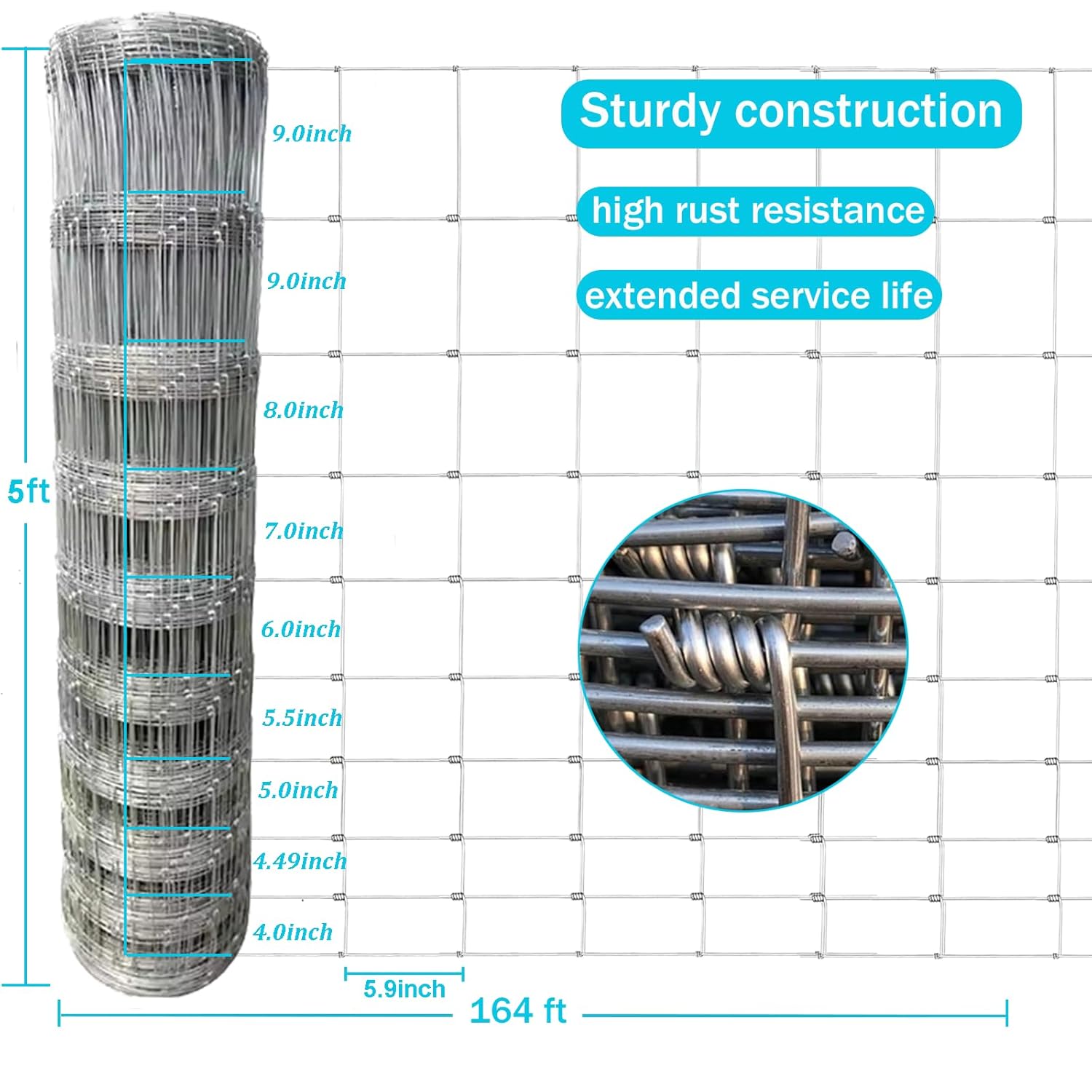 - Scientific Design -The bottom and upper have different opening mesh sizes.The Openings of fencing mesh get smaller toward the bottom to prevent rabbits, dogs, cats, chickens, foxes and other small animals to enter your farm,field or Garden.