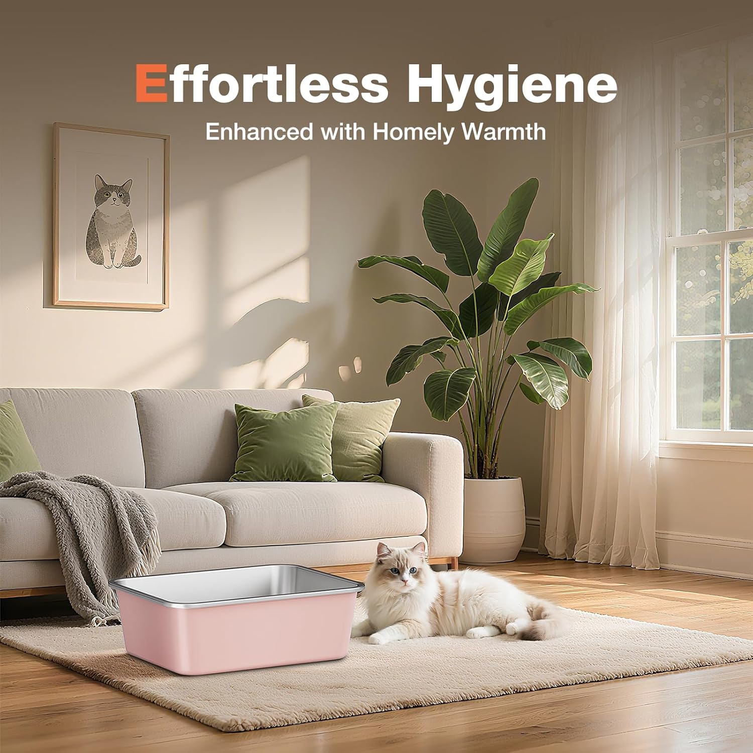 - 【Easy-to-Clean Stainless Steel】: Made from premium stainless steel, this litter box is super easy to clean and does a great job of controlling odors, providing your cat with a fresh and welcoming environment.