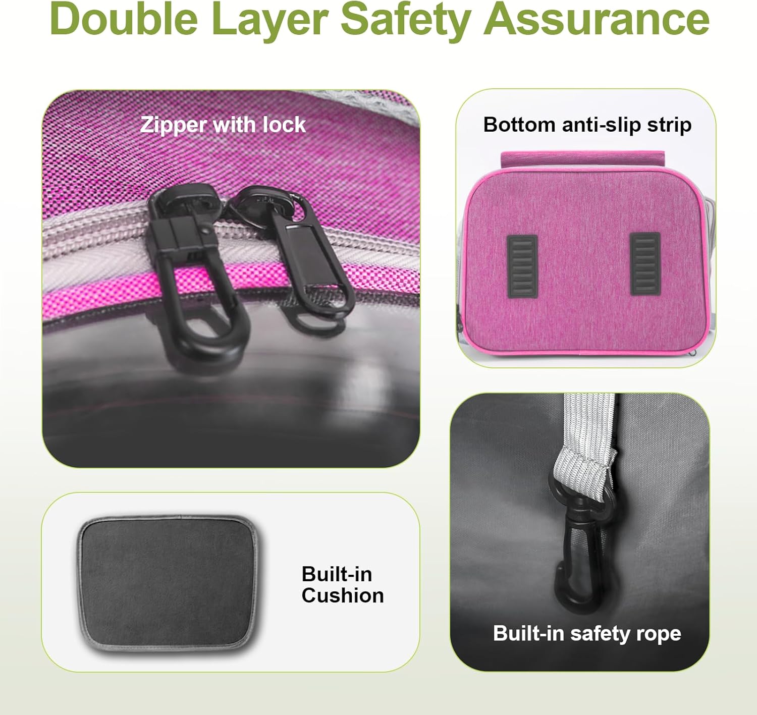- Secure and Convenient Features: Designed with your pet's safety in mind, our cat backpack is equipped with a variety of secure and convenient features. The shoulder strap comes with a chest buckle, keeping the backpack stable and preventing shoulder strain. The zipper is designed with a lock, providing extra security during travel. Additionally, the built-in anti-escape safety leash ensures that your pets stay securely inside the backpack at all times.
