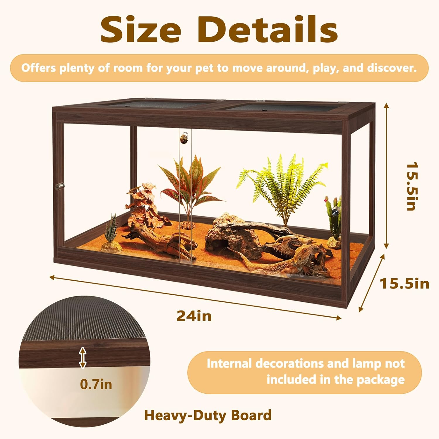 - 【High-Quality Reptile Habitat】Designed for reptile enthusiasts who seek a dependable and comfortable space for their pets, this high-quality habitat is crafted from sturdy solid wood treated with a water-repellent polyester coating. It's ideal for terrestrial reptiles and not intended for aquatic use, providing a dry and stable environment for daily activity.