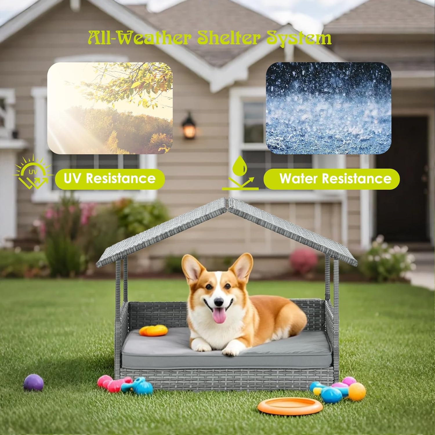 - 【Exclusive Plus-Size Design】33.3'' Extended Rattan Frame. Engineered with an expanded 33.3-inch platform (14% wider than standard 28'' models), this premium dog house provides ultimate stretch zones for breeds like French bulldogs and Poodles. Tested for 115lbs static weight capacity
