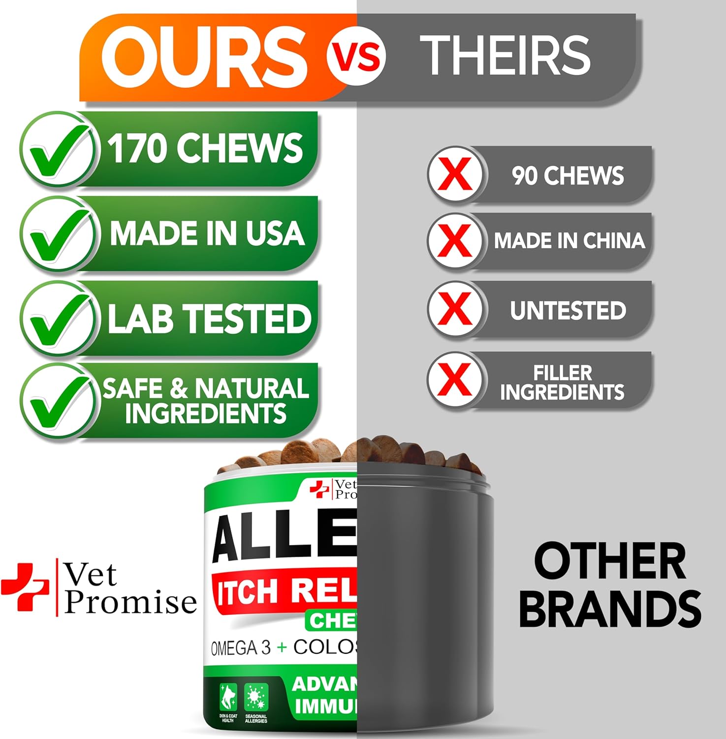 - Effective Dog Itch Relief: Our best itchy skin relief for dogs chews provide relief from allergies and serve as an excellent alternative to apoquel. Our product is the best solution for dog allergies