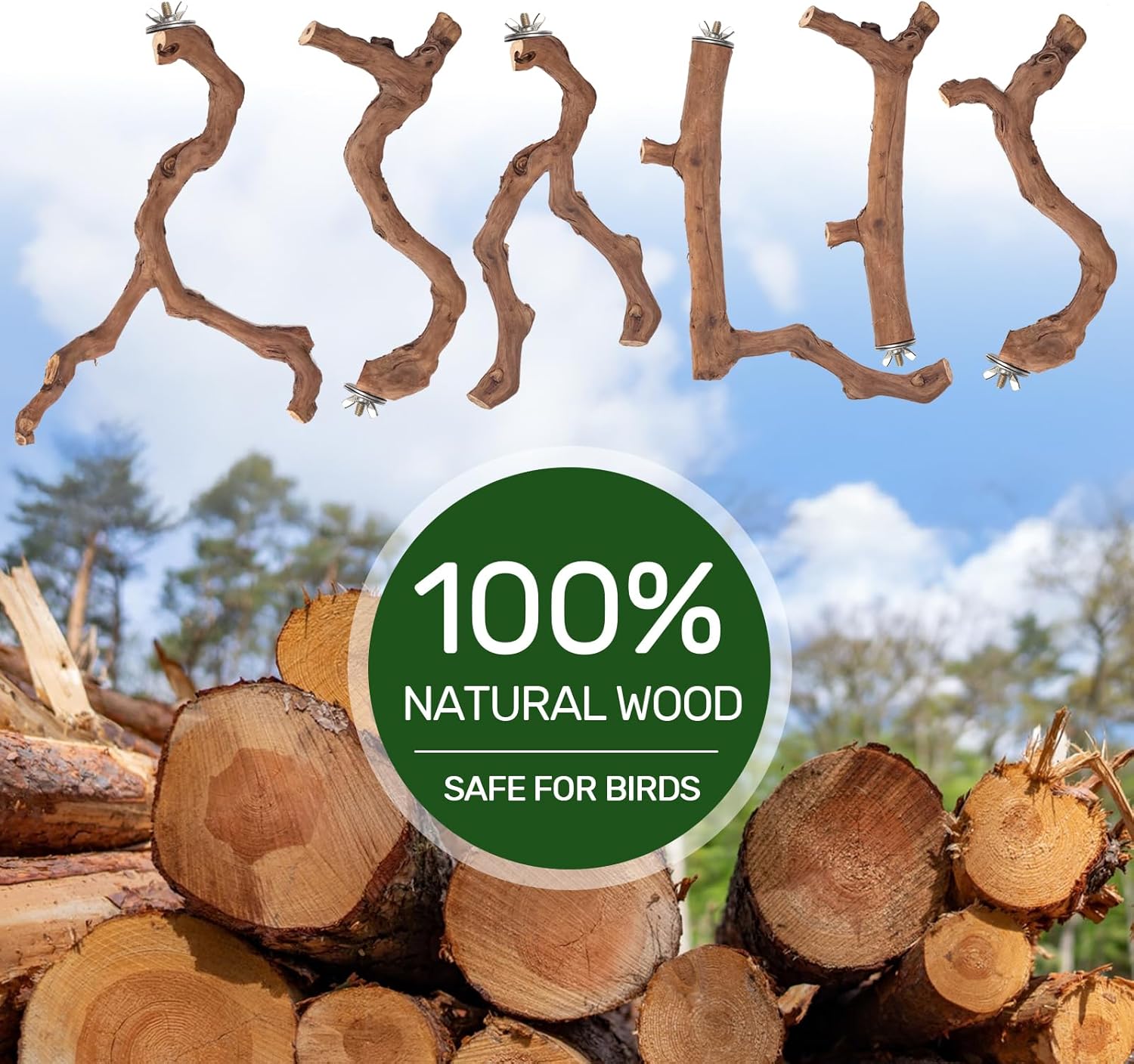 - 【Nature Bird Stand】: Each bird rack in this set is made by hand of natural grape branches, which are carefully treated and dried to provide a natural and safe habitat for your parrot.