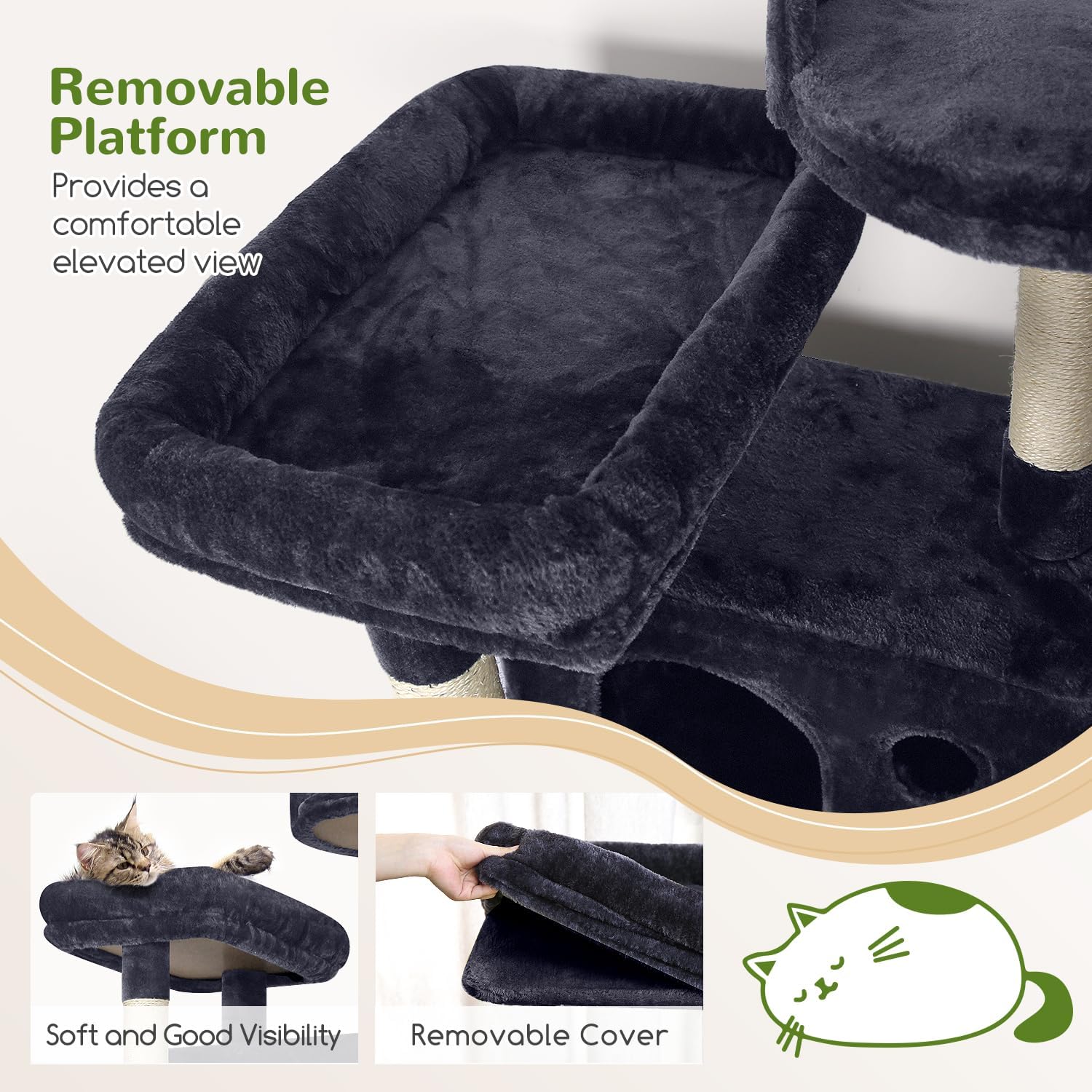 • SAFE AND STABLE: The thickened base and square design make it stable. We recommend using the anti-tipping straps provided with the cat tree for added stability