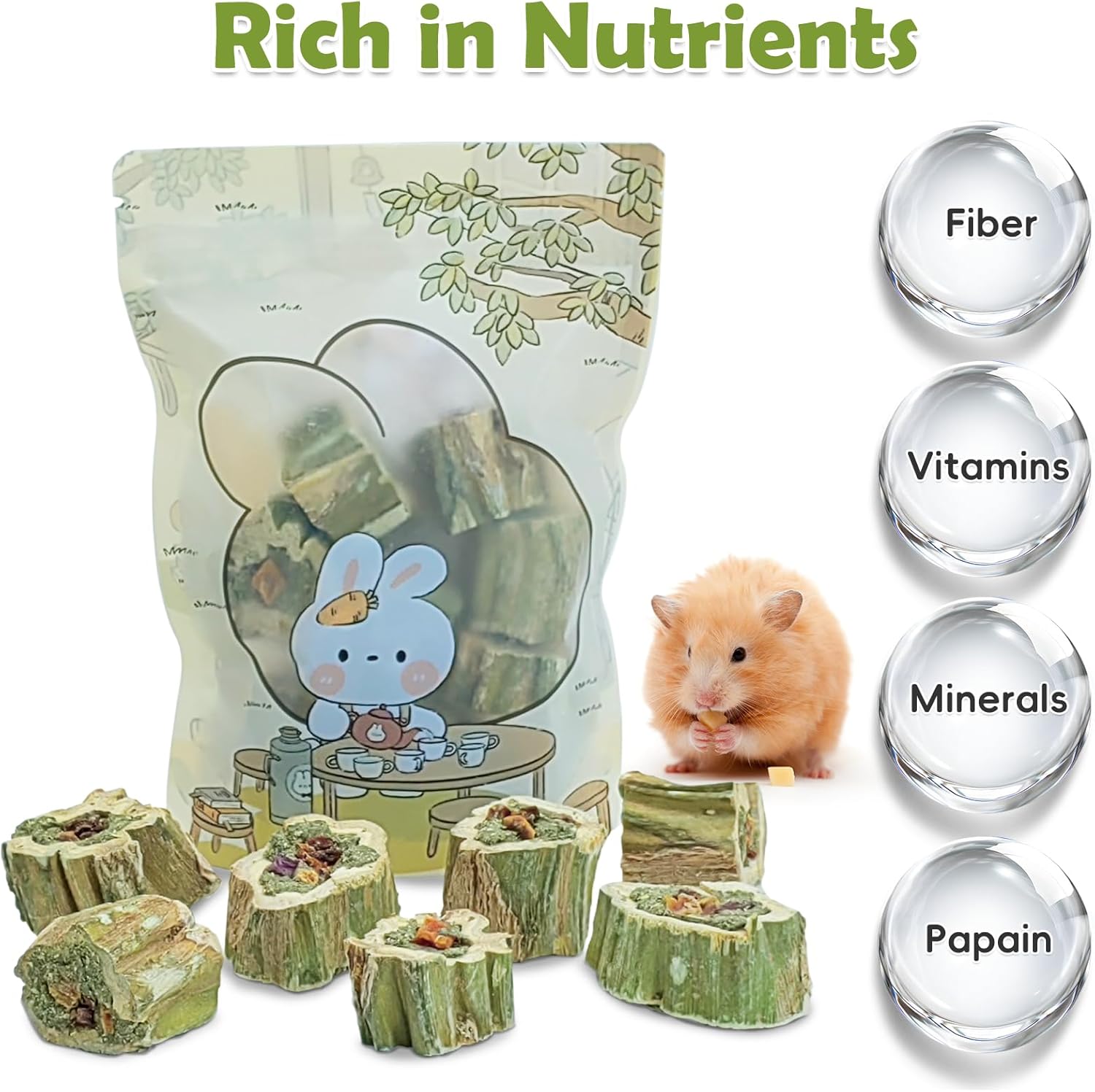 - Nutrient-Rich: The main components of papaya wood include cellulose, hemicellulose, and lignin. Fruits and vegetables are rich in cellulose, vitamins, and minerals, which help maintain your pet's digestive health and provide comprehensive nutrition