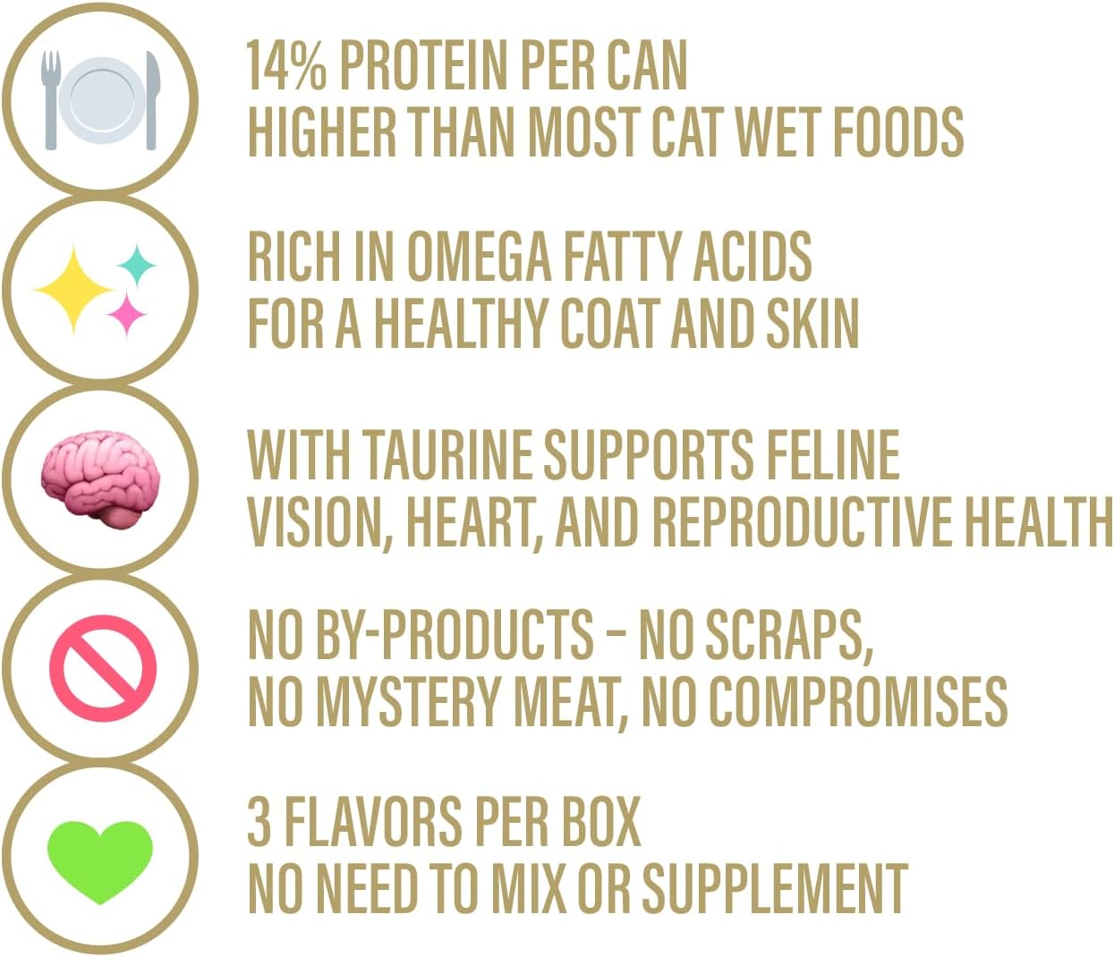 • 3 Flavor Variety to Keep Mealtime Exciting – Tuna & Salmon, Chicken and Turkey give your cat delicious variety with every meal