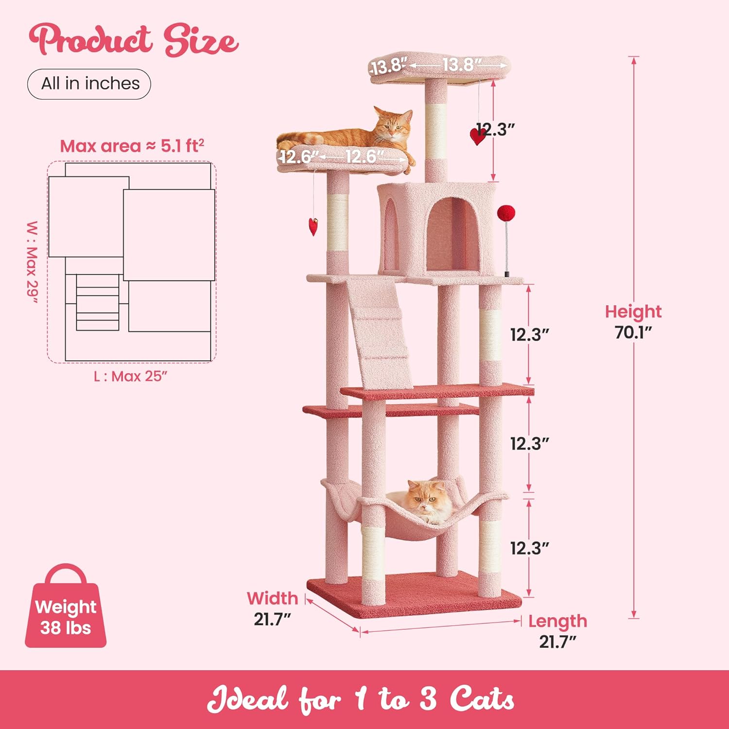- Ideal for Multi-Cat Households: This multifunctional cat tower features a soft hammock, sisal-wrapped scratching posts, and interactive toys for rest and fun