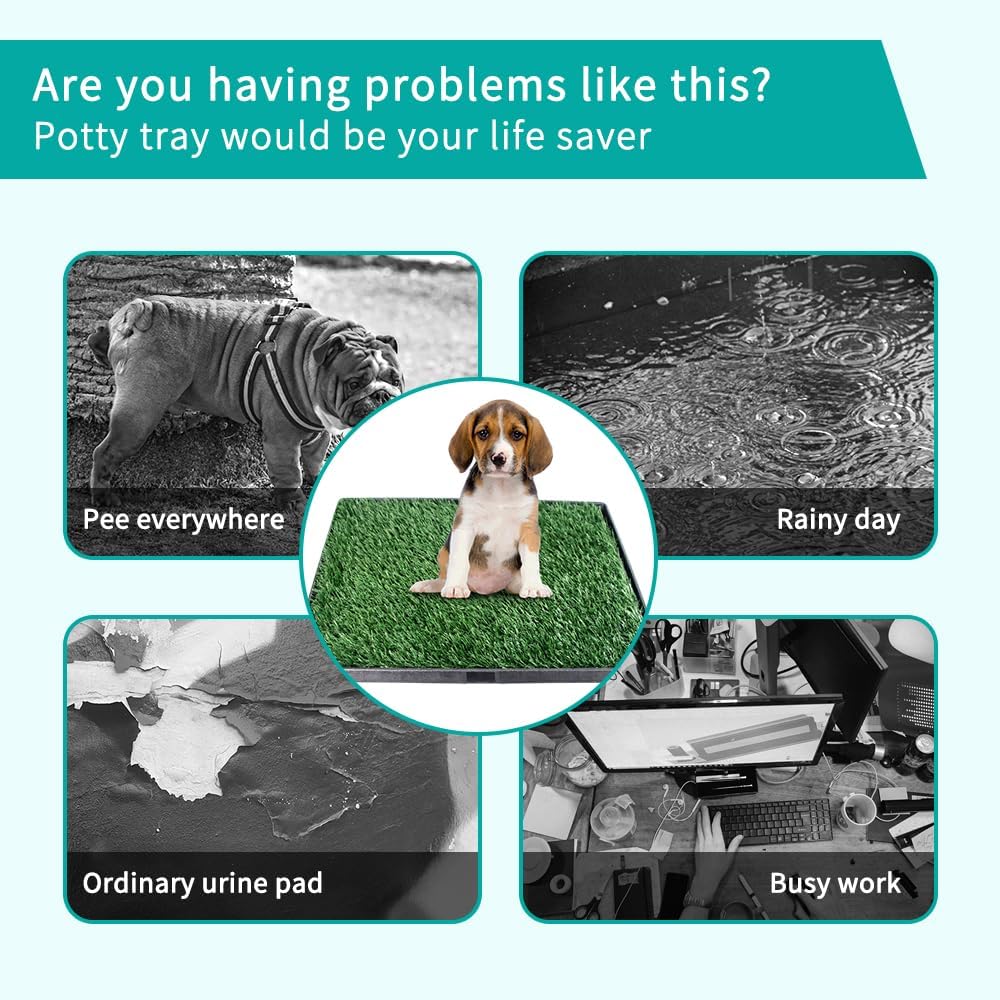 - MULTIFUNCTIONAL INDOOR DOG POTTY:This dog grass pad with tray is the perfect indoor dog potty system for medium and large dogs, providing a clean and convenient potty solution for apartments, balconies, porches, or homes without outdoor access