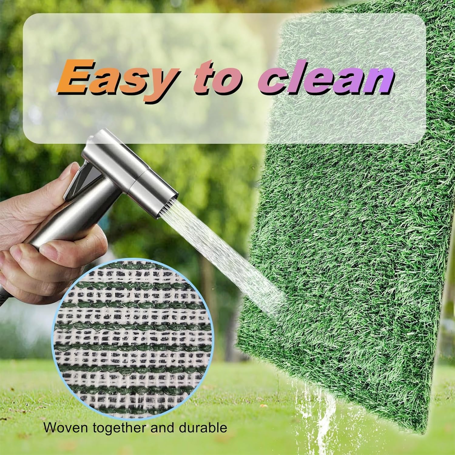 - EASY TO CLEAN AND REUSABLE:With a washable waterproof pee pad and a artificial grass pad, cleaning is quick and hassle-free. Simply rinse the grass, pad, and tray for a fresh and odor-free experience. This makes it a reliable choice for indoor dog potty trays and porch potties