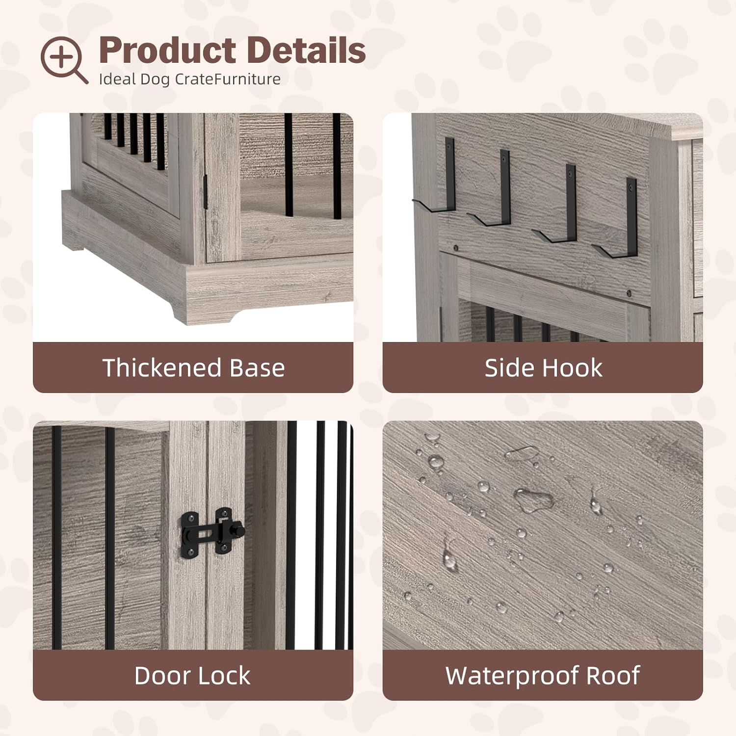 • Dual-Purpose Furniture-This multi function wooden dog kennel doubles as a stylish bedside table, sofa side table, or small TV stand. With a stunning white and rustic brown finish, it effortlessly blends into any room while providing hidden storage for all your essentials